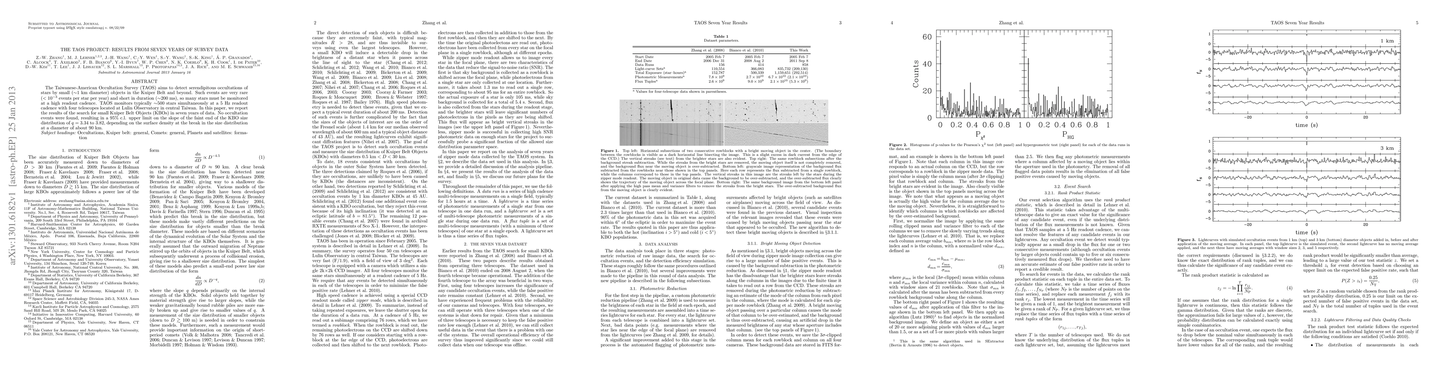 The TAOS Project, after seven years of monitoring around 500 stars, found no occultation events by small Kuiper Belt Objects, establishing a 95% confidence limit on the faint end of the KBO size distribution slope between 3.34 and 3.82.