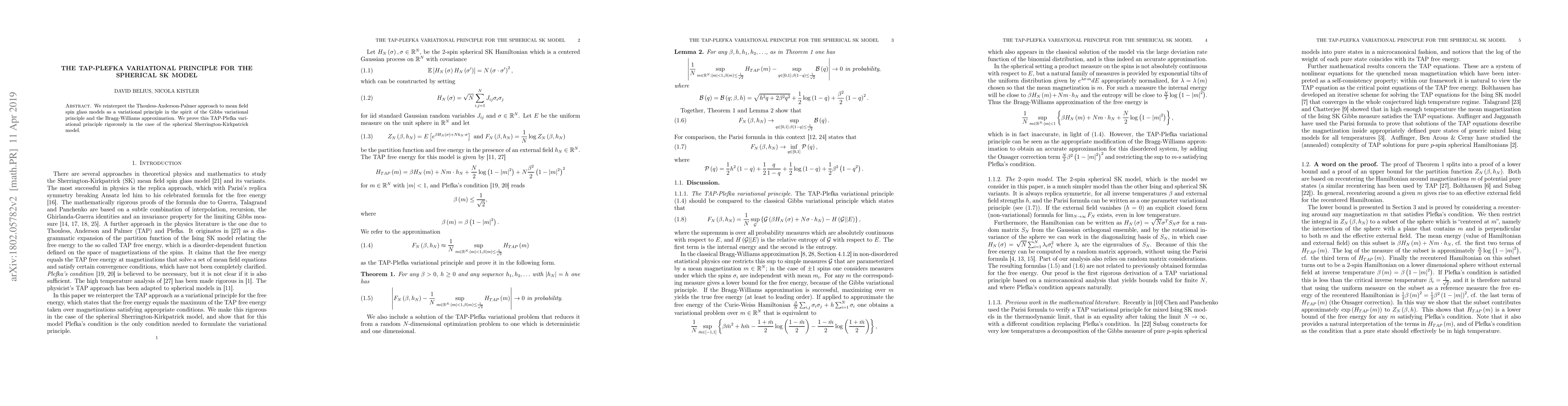This paper reinterprets the Thouless-Anderson-Palmer approach to spin glass models as a variational principle akin to Gibbs' and Bragg-Williams' methods, and rigorously proves this TAP-Plefka variational principle for the spherical Sherrington-Kirkpatrick model.