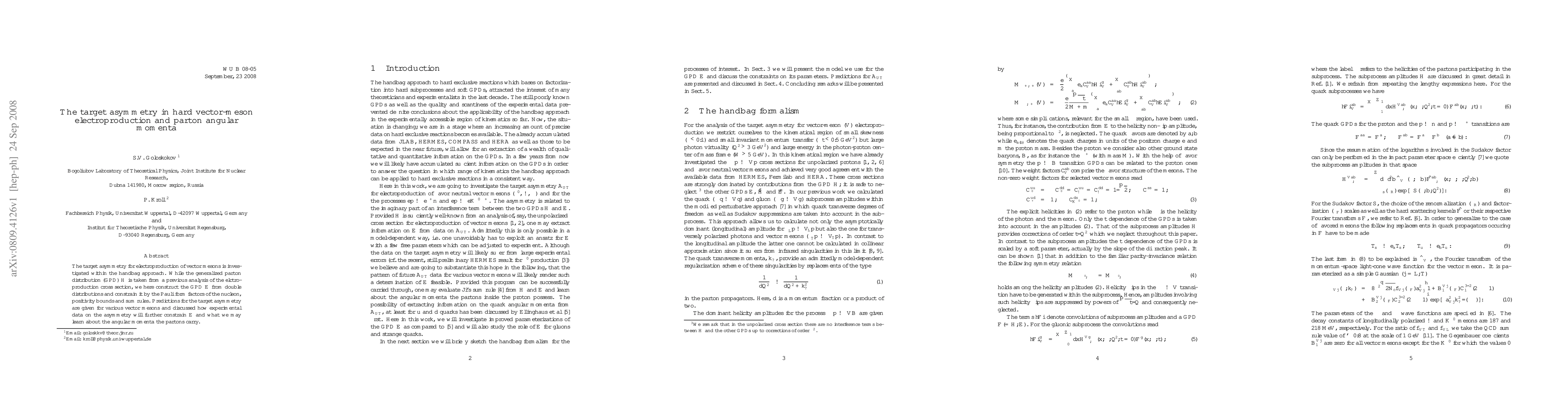 The target asymmetry for electroproduction of vector mesons is investigated within the handbag approach. While the generalized parton distribution (GPD) H is taken from a previous analysis of the elctroproduction cross section, we here construct the GPD E from double distributions and constrain it by the Pauli form factors of the nucleon, positivity bounds and sum rules. Predictions for the target asymmetry are given for various vector mesons and discussed how experimental data on the asymmetry will further constrain E and what we may learn about the angular momenta the partons carry.