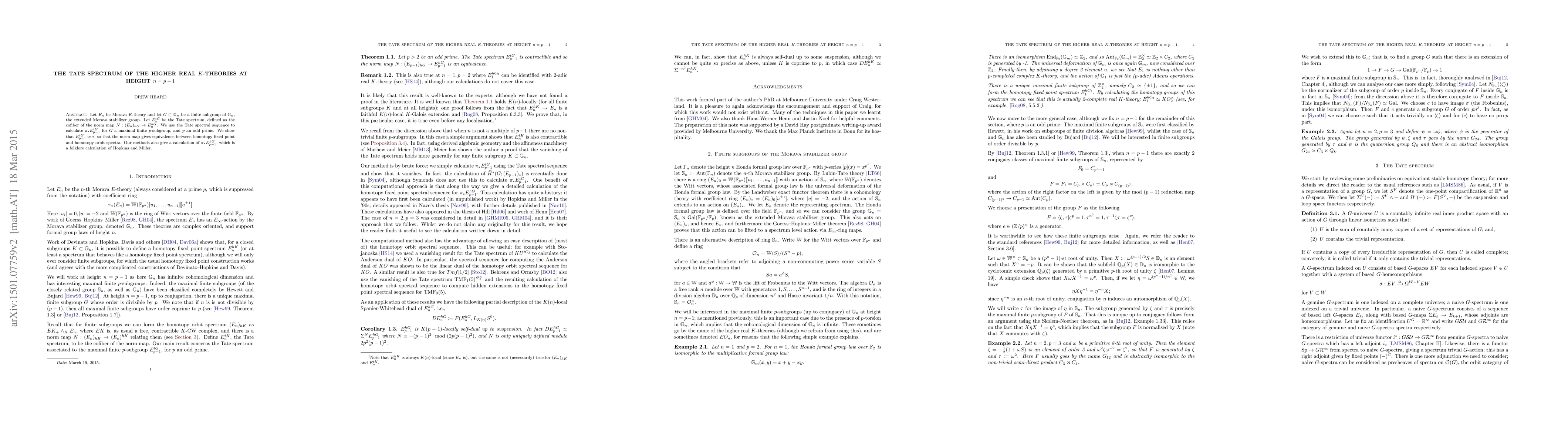 This paper calculates the Tate spectrum of higher real K-theories at height n=p-1, showing that it is equivalent to a point spectrum, which establishes an equivalence between homotopy fixed point and orbit spectra for maximal finite p-subgroups.