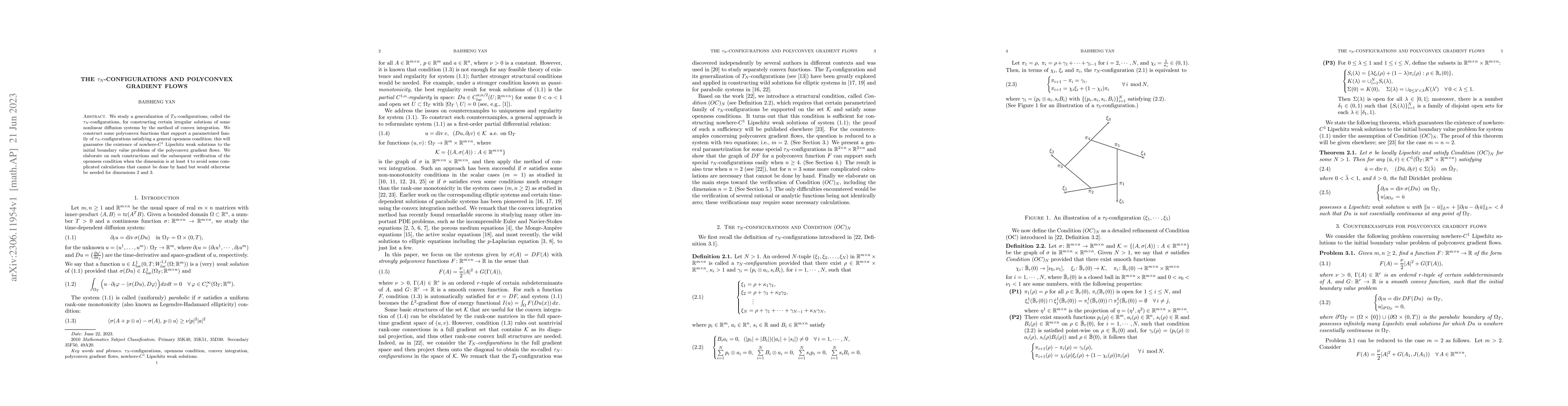 This paper explores $\tau_N$-configurations for constructing irregular solutions to nonlinear diffusion systems using convex integration. It constructs polyconvex functions that support a family of $\tau_N$-configurations, ensuring the existence of weak solutions to polyconvex gradient flows, with special attention to dimensions at least 4 to simplify calculations.