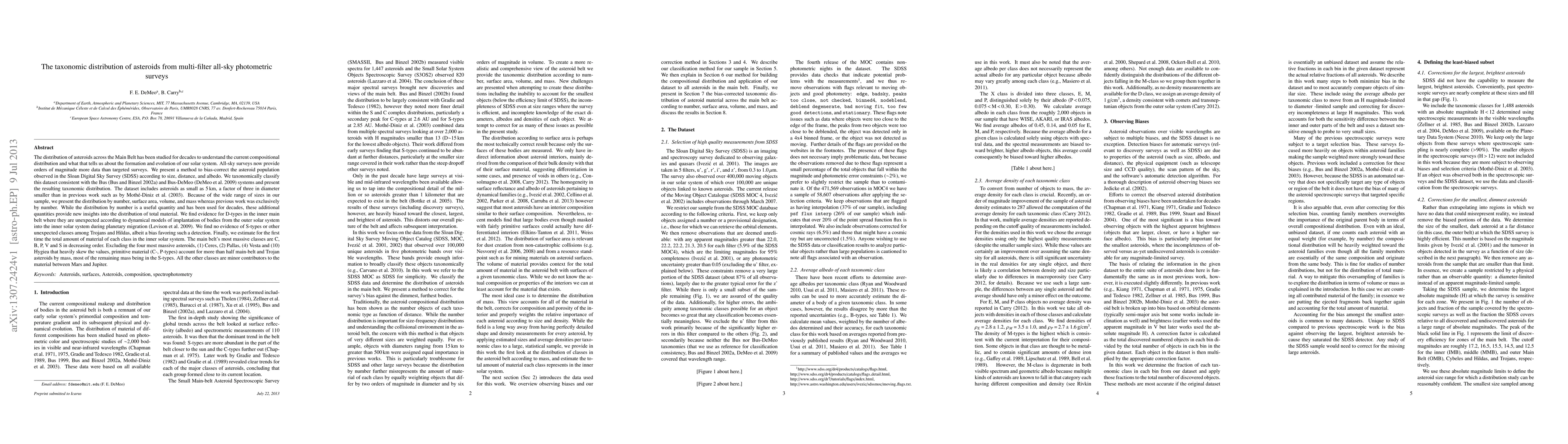 This study presents a bias-corrected taxonomic classification of asteroids from the Sloan Digital Sky Survey, revealing the compositional distribution across the Main Belt. The analysis includes asteroids as small as 5 km and provides insights into the distribution by mass, surface area, volume, and number, showing unexpected D-types in the inner main belt and estimating the total material of each class for the first time.