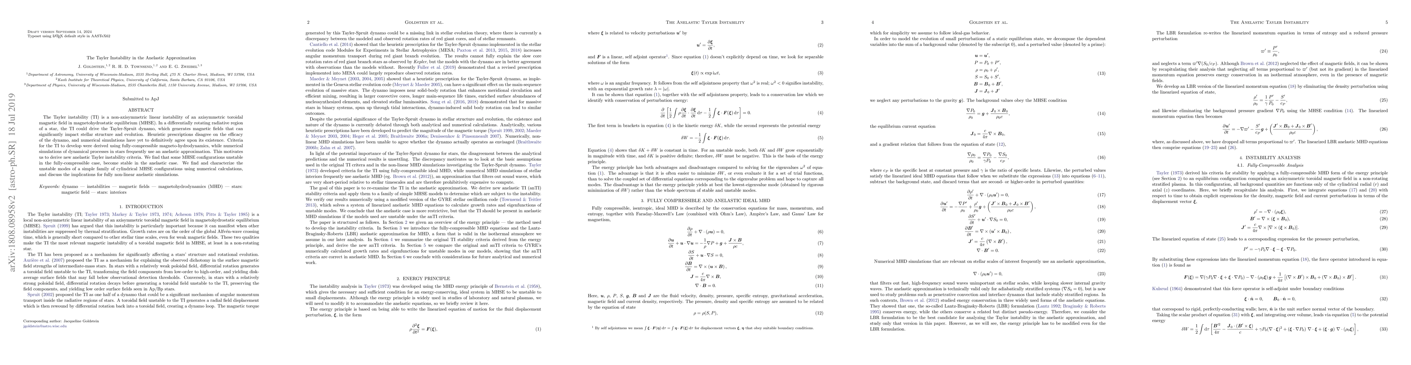 The Tayler instability (TI) is a non-axisymmetric linear instability of an axisymmetric toroidal magnetic field in magneto-hydrostatic equilibrium (MHSE). Spruit (1999, 2002) has proposed that in a differentially rotating radiative region of a star, the TI drives a dynamo which generates magnetic fields that can efficiently transport angular momentum; a parameterized version of this dynamo has been implemented in stellar structure and evolution codes and shown to be important for determining interior spin. Numerical simulations, however, have yet to definitively demonstrate the operation of the dynamo. A criterion for the MHSE to develop the TI was derived using fully-compressible magneto-hydrodynamics, while numerical simulations of dynamical processes in stars frequently use an anelastic approximation. This motivates us to derive a new anelastic Tayler instability (anTI) criterion. We find that some MHSE configurations unstable in the fully-compressible case, become stable in the anelastic case. We find and characterize the unstable modes of a simple family of cylindrical MHSE configurations using numerical calculations, and discuss the implications for fully non-linear anelastic simulations.