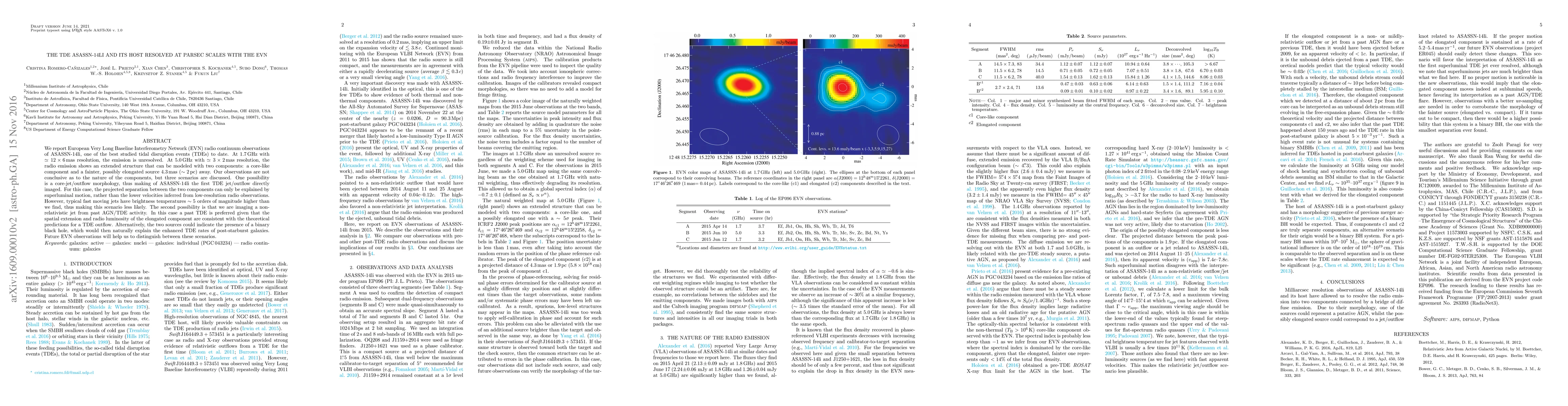 This paper reports EVN observations of the TDE ASASSN-14li, revealing an extended radio structure with two components, potentially indicating a core-jet/outflow morphology or a non-relativistic jet from past activity. Future observations are needed to resolve the nature of these components.