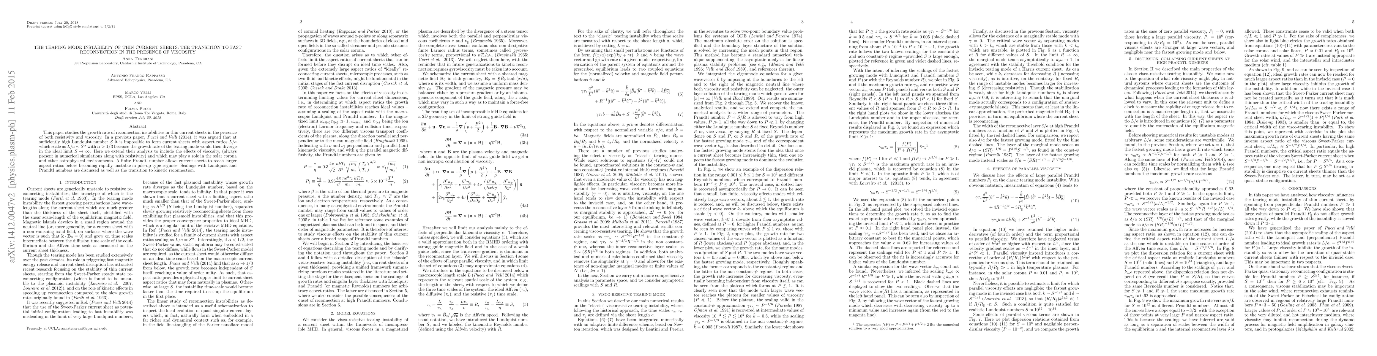This paper studies the growth rate of reconnection instabilities in thin current sheets in the presence of both resistivity and viscosity. In a previous paper, Pucci and Velli (2014), it was argued that at sufficiently high Lundquist number S it is impossible to form current sheets with aspect ratios L/a which scale as $L/a\sim S^\alpha$ with $\alpha > 1/3$ because the growth rate of the tearing mode would then diverge in the ideal limit $S\rightarrow\infty$. Here we extend their analysis to include the effects of viscosity, (always present in numerical simulations along with resistivity) and which may play a role in the solar corona and other astrophysical environments. A finite Prandtl number allows current sheets to reach larger aspect ratios before becoming rapidly unstable in pile-up type regimes. Scalings with Lundquist and Prandtl numbers are discussed as well as the transition to kinetic reconnection