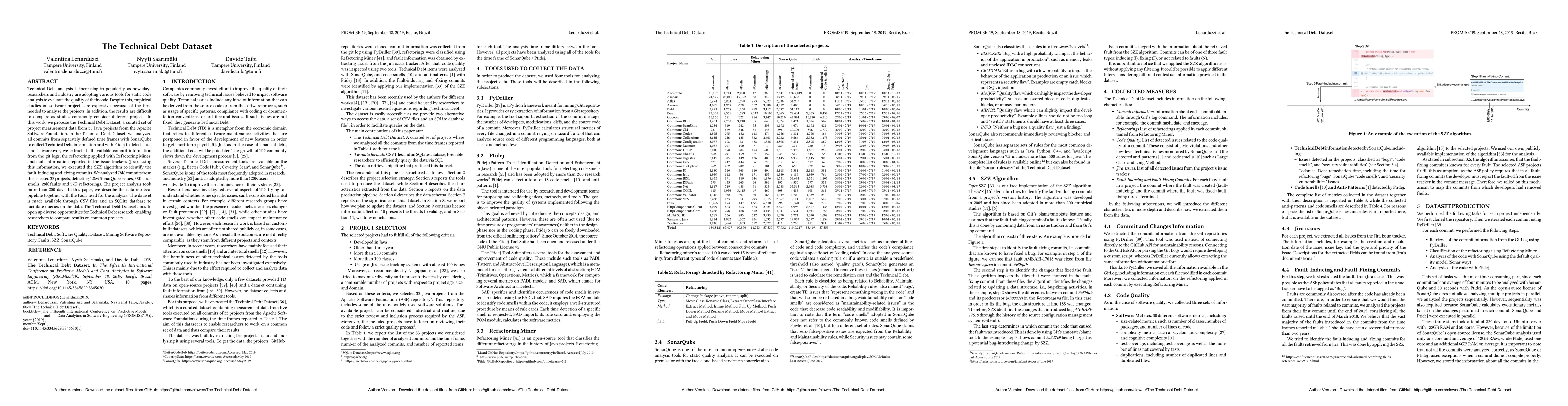 The Technical Debt Dataset provides comprehensive measurement data from 33 Java projects, including technical debt information, code smells, faults, and refactorings, collected over 78K commits and analyzed using various tools. The dataset aims to facilitate comparative Technical Debt research by providing a standardized set of data from common projects.