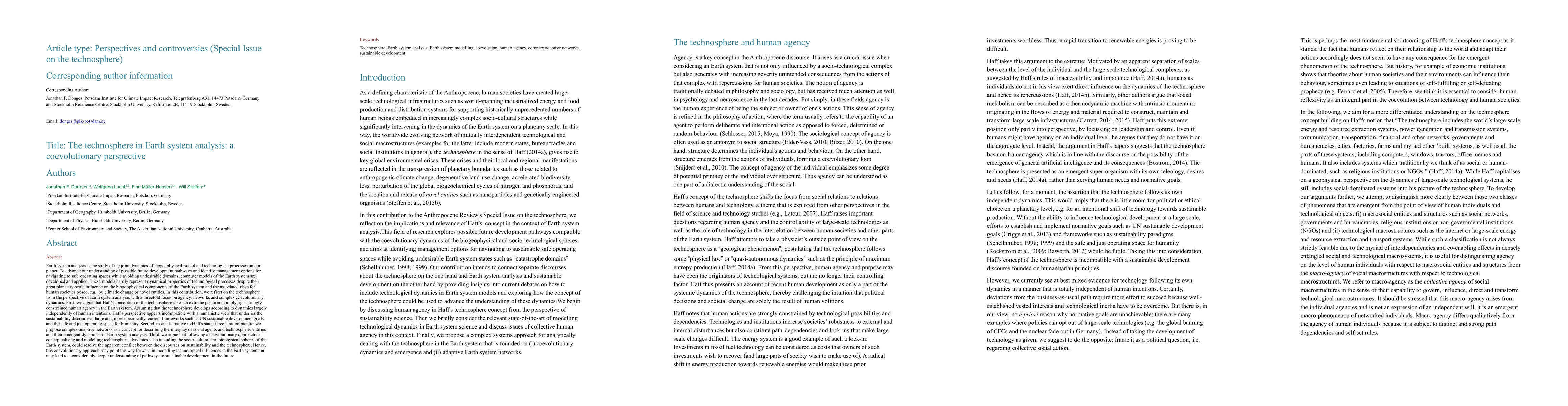 This paper critiques Haff's static view of the technosphere, proposing complex adaptive networks and a coevolutionary approach to better integrate technological processes in Earth system analysis, aligning with sustainability goals and addressing socio-cultural and biophysical interactions.