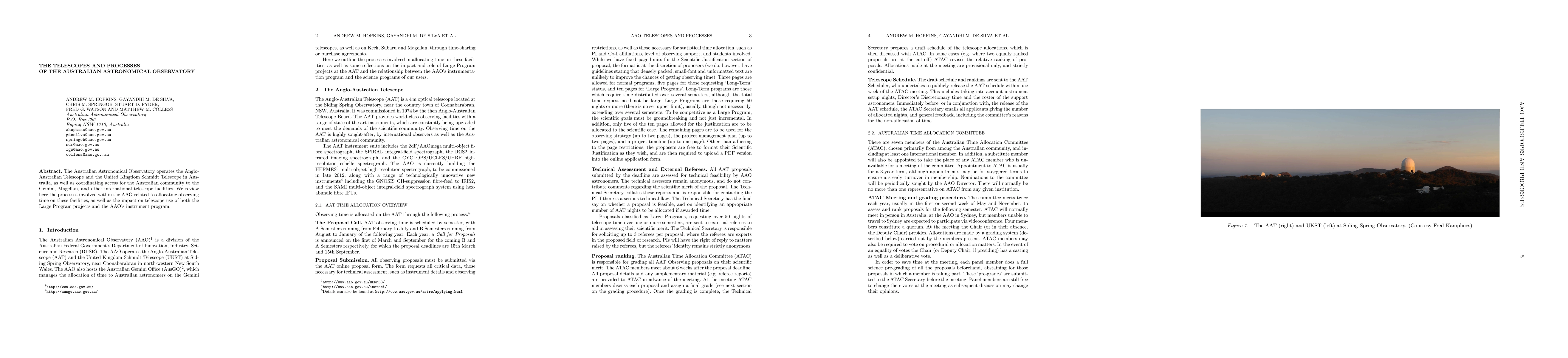 The Australian Astronomical Observatory manages observing time for several international telescopes, including Anglo-Australian Telescope and Gemini, with a focus on Large Program projects and AAO's instrument program.