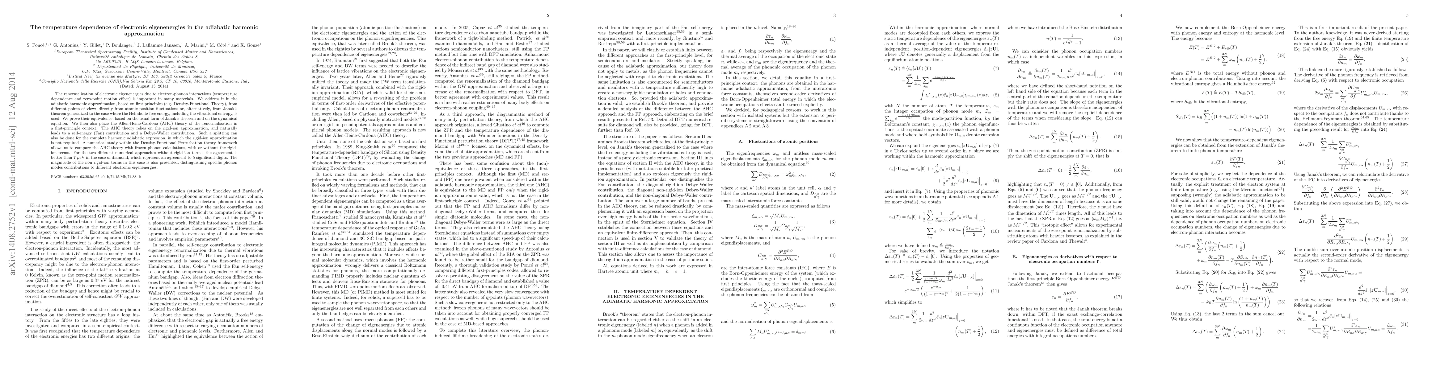 The renormalization of electronic eigenenergies due to electron-phonon interactions (temperature dependence and zero-point motion effect) is important in many materials. We address it in the adiabatic harmonic approximation, based on first principles (e.g. Density-Functional Theory), from different points of view: directly from atomic position fluctuations or, alternatively, from Janak's theorem generalized to the case where the Helmholtz free energy, including the vibrational entropy, is used. We prove their equivalence, based on the usual form of Janak's theorem and on the dynamical equation. We then also place the Allen-Heine-Cardona (AHC) theory of the renormalization in a first-principle context. The AHC theory relies on the rigid-ion approximation, and naturally leads to a self-energy (Fan) contribution and a Debye-Waller contribution. Such a splitting can also be done for the complete harmonic adiabatic expression, in which the rigid-ion approximation is not required. A numerical study within the Density-Functional Perturbation theory framework allows us to compare the AHC theory with frozen-phonon calculations, with or without the rigid-ion terms. For the two different numerical approaches without rigid-ion terms, the agreement is better than 7 $\mu$eV in the case of diamond, which represent an agreement to 5 significant digits. The magnitude of the non rigid-ion terms in this case is also presented, distinguishing specific phonon modes contributions to different electronic eigenenergies.