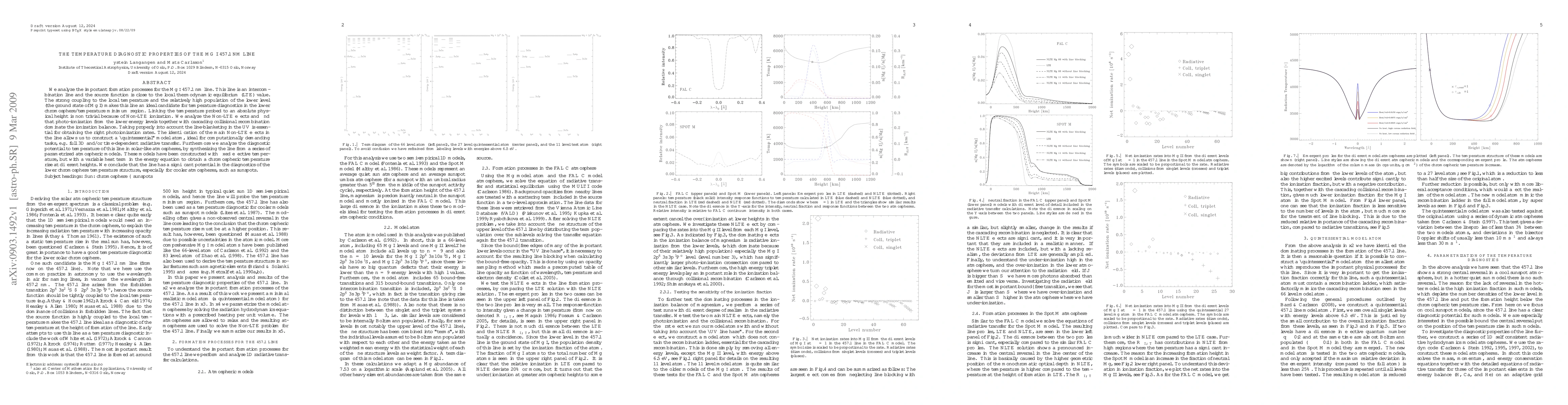 We analyze the important formation processes for the Mg I 457.1 nm line. This line is an intercom- bination line and the source function is close to the local thermodynamic equilibrium (LTE) value. The strong coupling to the local temperature and the relatively high population of the lower level (the ground state of Mg I) makes this line an ideal candidate for temperature diagnostics in the lower chromosphere/temperature minimum region. Linking the temperature probed to an absolute phys- ical height is non trivial because of Non-LTE ionization. We analyze the Non-LTE effects and find that photo-ionization from the lower energy levels together with cascading collisional recombination dominate the ionization balance. Taking properly into account the line-blanketing in the UV is essen- tial for obtaining the right photoionization rates. The identification of the main Non-LTE effects in the line allows us to construct a quintessential model atom, ideal for computationally demanding tasks, e.g. full 3D and/or time-dependent radiative transfer. Furthermore we analyze the diagnostic potential to temperature of this line in solar-like atmospheres, by synthesizing the line from a series of parametrized atmospheric models. These models have been constructed with fixed effective temper- ature, but with a variable heat term in the energy equation to obtain a chromospheric temperature rise at different heights. We conclude that the line has a significant potential in the diagnostics of the lower chromosphere temperature structure, especially for cooler atmospheres, such as sunspots.
