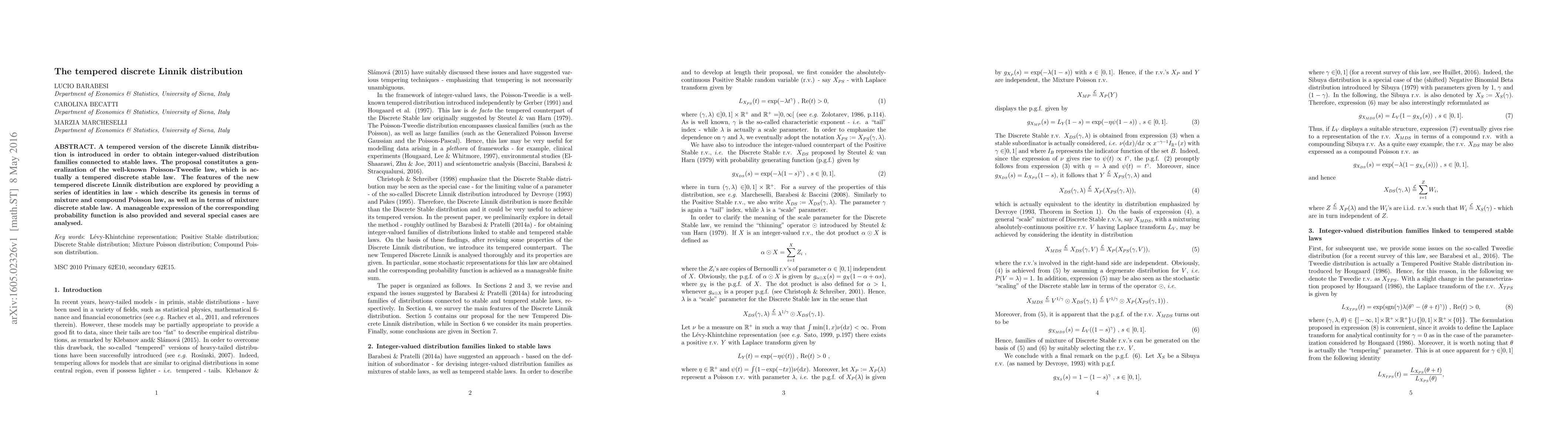 The paper introduces a tempered discrete Linnik distribution, generalizing the Poisson-Tweedie law, and explores its properties through mixture and compound identities, providing a manageable probability function and analyzing special cases.