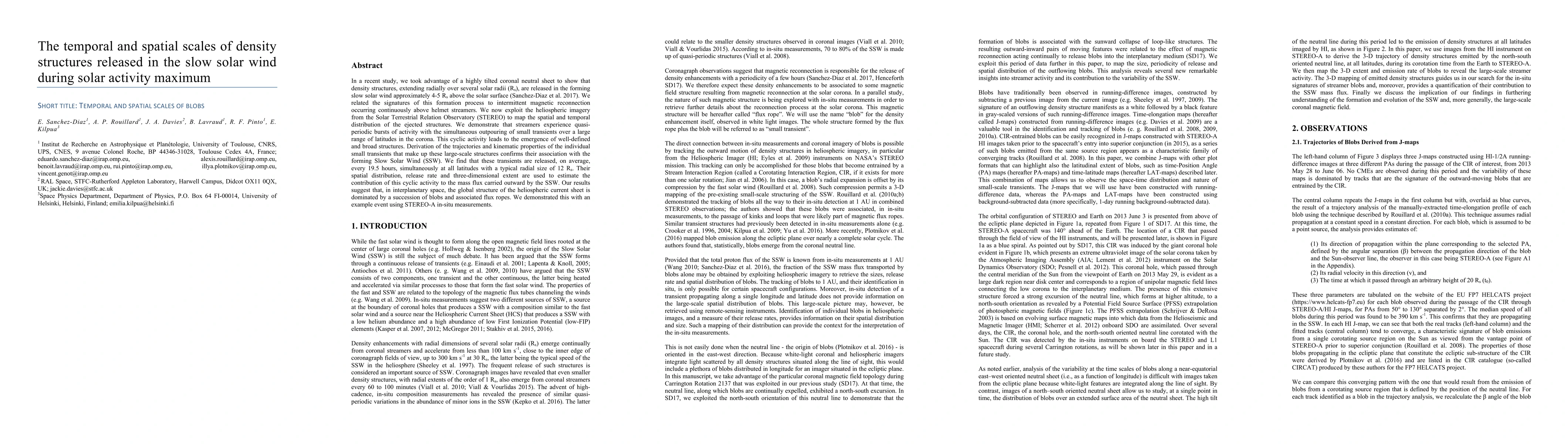 Research reveals that small density structures released in the slow solar wind during solar activity maximum occur in cycles of 19.5 hours, with simultaneous bursts at all latitudes, contributing to a succession of blobs and flux ropes in the heliospheric current sheet.