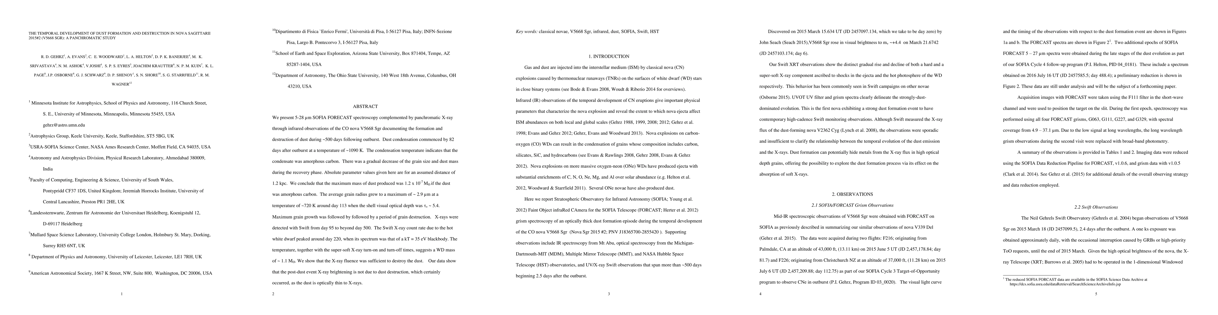 We present 5-28 micron SOFIA FORECAST spectroscopy complemented by panchromatic X-ray through infrared observations of the CO nova V5668 Sgr documenting the formation and destruction of dust during 500 days following outburst. Dust condensation commenced by 82 days after outburst at a temperature of 1090 K. The condensation temperature indicates that the condensate was amorphous carbon. There was a gradual decrease of the grain size and dust mass during the recovery phase. Absolute parameter values given here are for an assumed distance of 1.2 kpc. We conclude that the maximum mass of dust produced was 1.2 x 10-7 solar masses if the dust was amorphous carbon. The average grain radius grew to a maximum of 2.9 microns at a temperature of 720 K around day 113 when the shell visual optical depth was Tau = 5.4. Maximum grain growth was followed by followed by a period of grain destruction. X-rays were detected with Swift from day 95 to beyond day 500. The Swift X-ray count rate due to the hot white dwarf peaked around day 220, when its spectrum was that of a kT = 35 eV blackbody. The temperature, together with the super-soft X-ray turn-on and turn-off times, suggests a WD mass of 1.1 solar masses. We show that the X-ray fluence was sufficient to destroy the dust. Our data show that the post-dust event X-ray brightening is not due to dust destruction, which certainly occurred, as the dust is optically thin to X-rays.