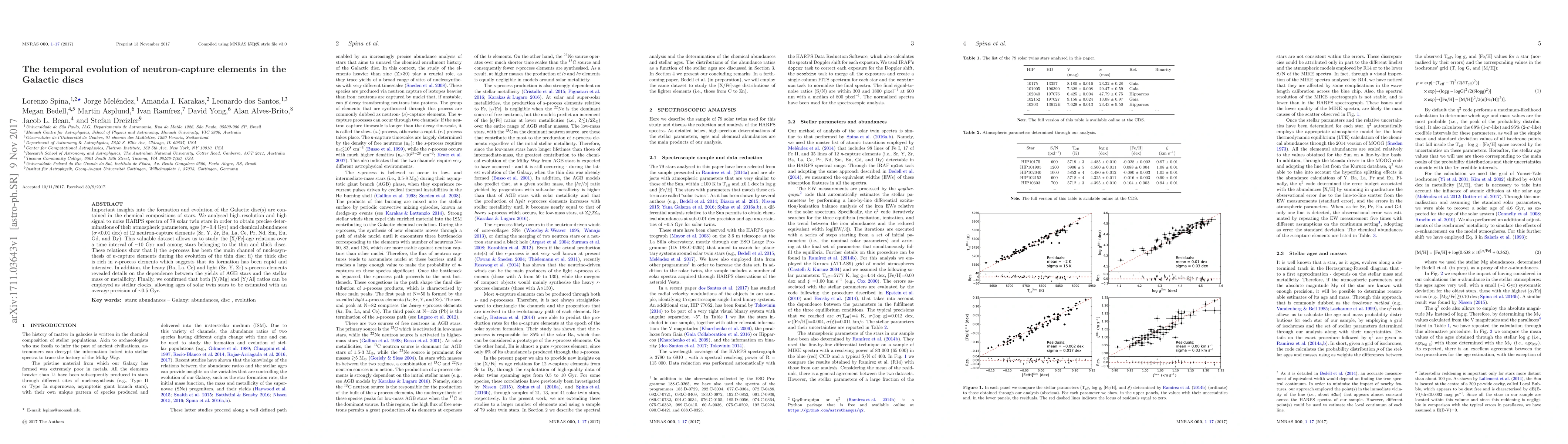 This study analyzes high-resolution spectra of 79 solar twin stars to determine the temporal evolution of neutron-capture elements in the Galactic discs, revealing that the thin disc primarily formed these elements via the s-process, while the thick disc shows rapid formation enriched by r-process elements. The research also confirms the use of [Y/Mg] and [Y/Al] ratios as stellar clocks for age estimation.