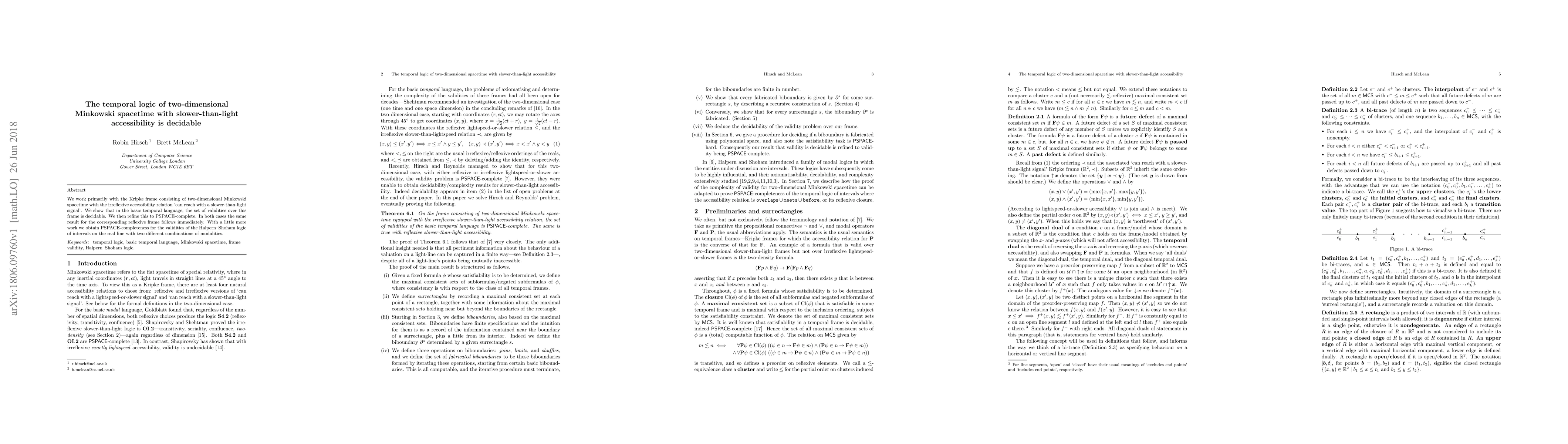 Researchers prove that the validity of temporal logic statements in two-dimensional Minkowski spacetime with slower-than-light accessibility is decidable, with implications for models of time travel.