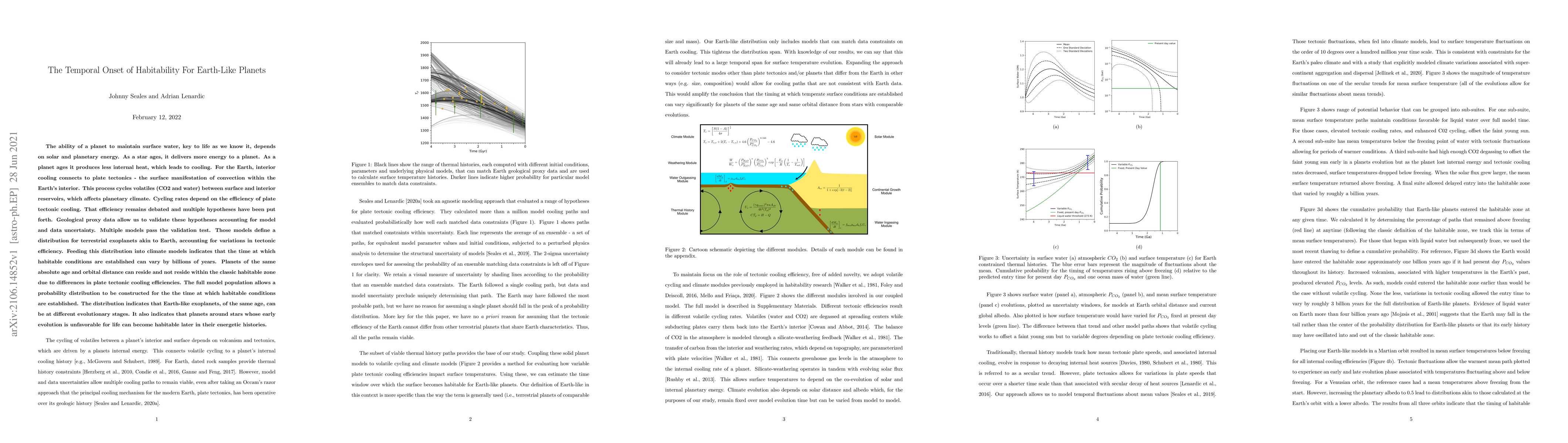 The ability of a planet to maintain surface water, key to life as we know it, depends on solar and planetary energy. As a star ages, it delivers more energy to a planet. As a planet ages it produces less internal heat, which leads to cooling. For the Earth, interior cooling connects to plate tectonics - the surface manifestation of convection within the Earth's interior. This process cycles volatiles (CO2 and water) between surface and interior reservoirs, which affects planetary climate. Cycling rates depend on the efficiency of plate tectonic cooling. That efficiency remains debated and multiple hypotheses have been put forth. Geological proxy data allow us to validate these hypotheses accounting for model and data uncertainty. Multiple models pass the validation test. Those models define a distribution for terrestrial exoplanets akin to Earth, accounting for variations in tectonic efficiency. Feeding this distribution into climate models indicates that the time at which habitable conditions are established can vary by billions of years. Planets of the same absolute age and orbital distance can reside and not reside within the classic habitable zone due to differences in plate tectonic cooling efficiencies. The full model population allows a probability distribution to be constructed for the the time at which habitable conditions are established. The distribution indicates that Earth-like exoplanets, of the same age, can be at different evolutionary stages. It also indicates that planets around stars whose early evolution is unfavorable for life can become habitable later in their energetic histories.