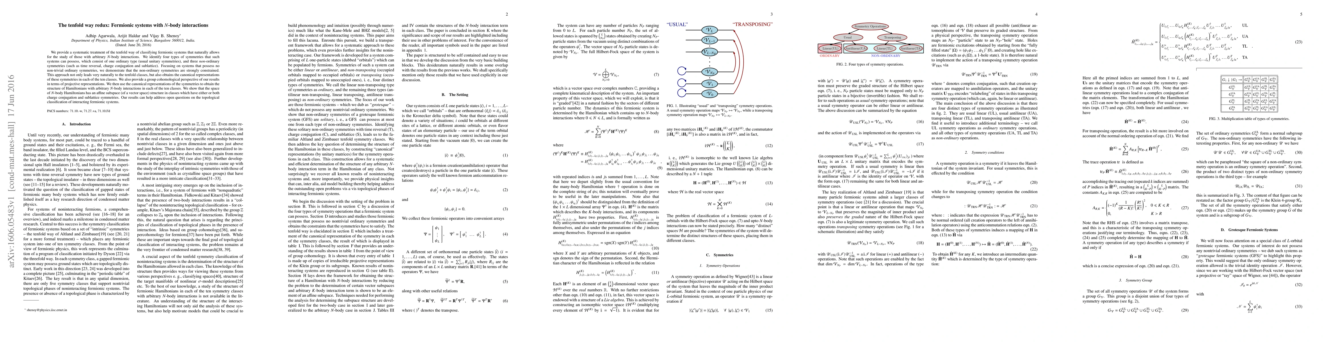 We provide a systematic treatment of the tenfold way of classifying fermionic systems that naturally allows for the study of those with arbitrary $N$-body interactions. We identify four types of symmetries that such systems can possess, which consist of one ordinary type (usual unitary symmetries), and three non-ordinary symmetries (such as time reversal, charge conjugation and sublattice). Focusing on systems that possess no non-trivial ordinary symmetries, we demonstrate that the non-ordinary symmetries are strongly constrained. This approach not only leads very naturally to the tenfold classes, but also obtains the canonical representations of these symmetries in each of the ten classes. We also provide a group cohomological perspective of our results in terms of projective representations. We then use the canonical representations of the symmetries to obtain the structure of Hamiltonians with arbitrary $N$-body interactions in each of the ten classes. We show that the space of $N$-body Hamiltonians has an affine subspace (of a vector space) structure in classes which have either or both charge conjugation and sublattice symmetries. Our results can help address open questions on the topological classification of interacting fermionic systems.