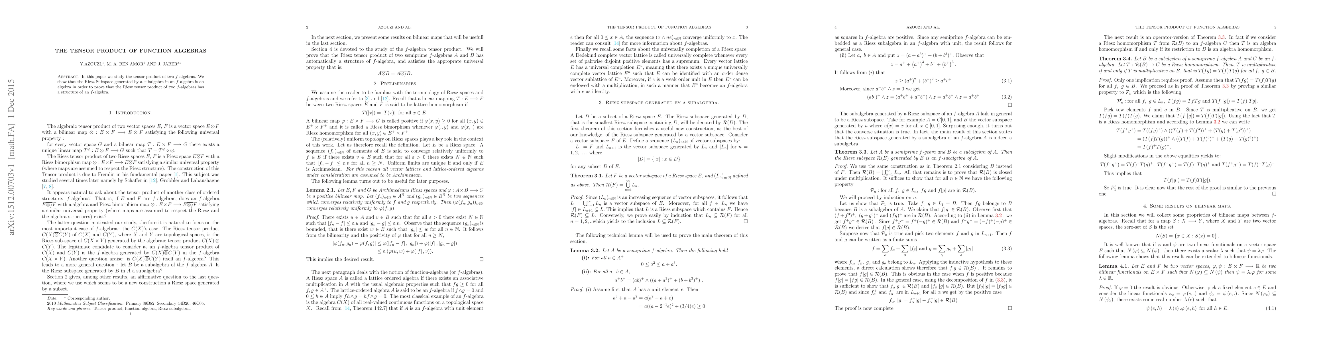 Summary: This paper investigates the tensor product of two $f$-algebras and demonstrates that the Riesz tensor product retains the $f$-algebra structure, using the Riesz Subspace generated by a subalgebra to establish this result.
