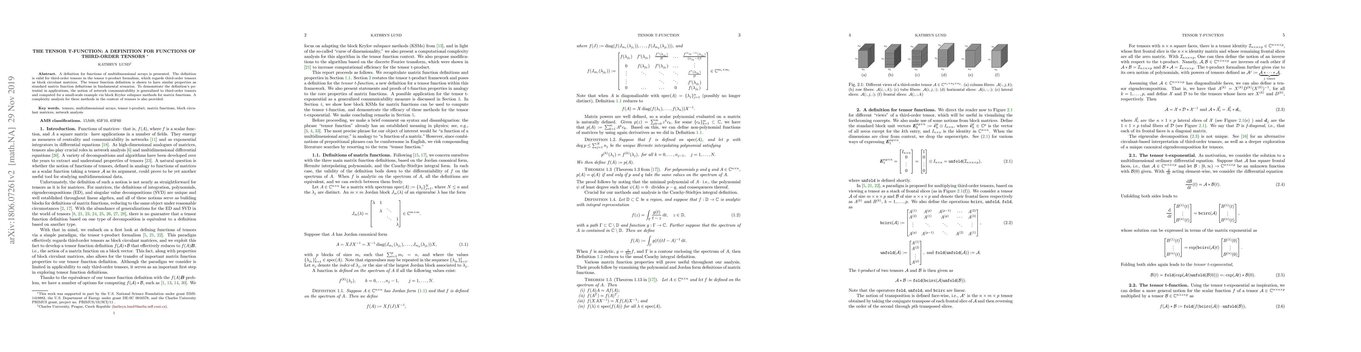 A definition for functions of third-order tensors is presented, showing similar properties to matrix function definitions, with potential applications in network communicability calculations.