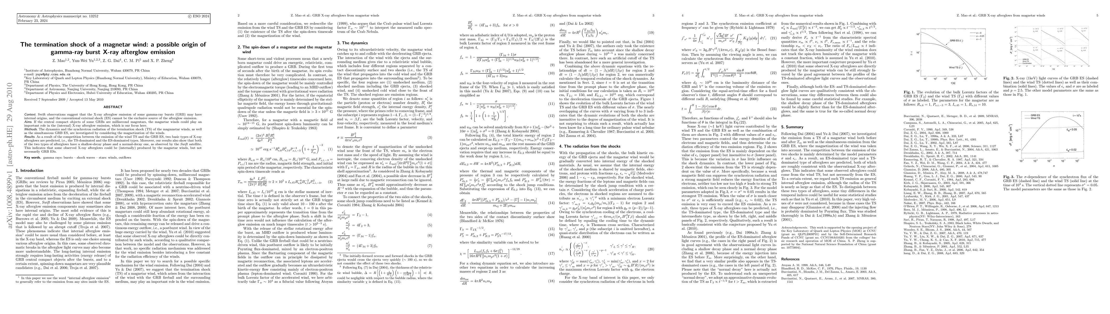 This paper investigates the role of magnetar winds in the X-ray afterglow emission of gamma-ray bursts, proposing that the termination shock of these winds can generate the observed afterglows. It predicts two types of afterglows based on the dynamics of the magnetar wind termination shock and the conventional external shock, suggesting that some afterglows may originate internally from the magnetar winds rather than the external shock.