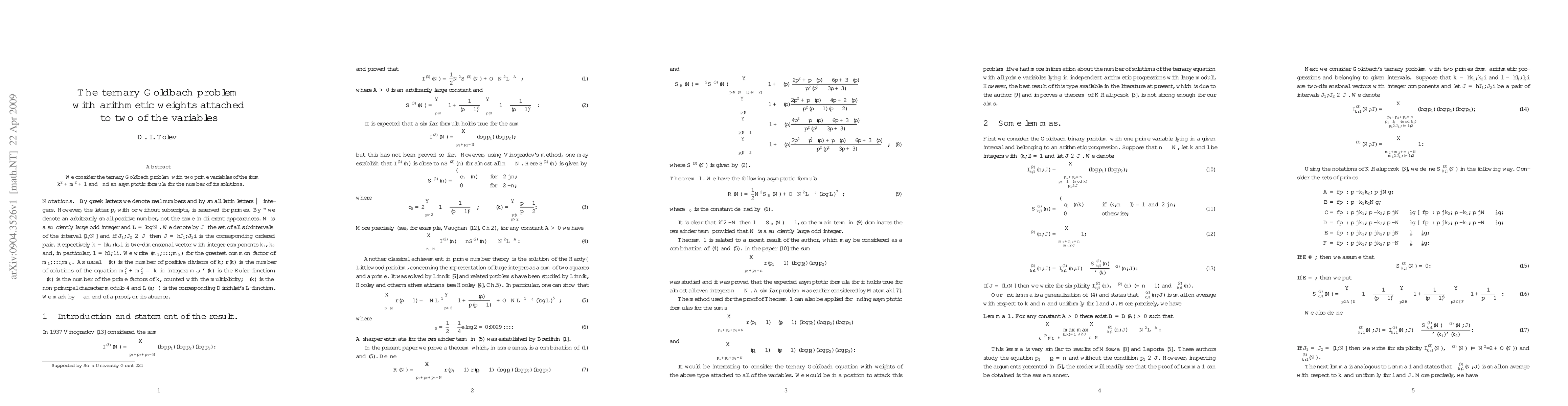 Summary: This paper investigates the ternary Goldbach problem where two prime variables are of the form $k^2+m^2+1$, and it provides an asymptotic formula for the number of solutions to this problem.