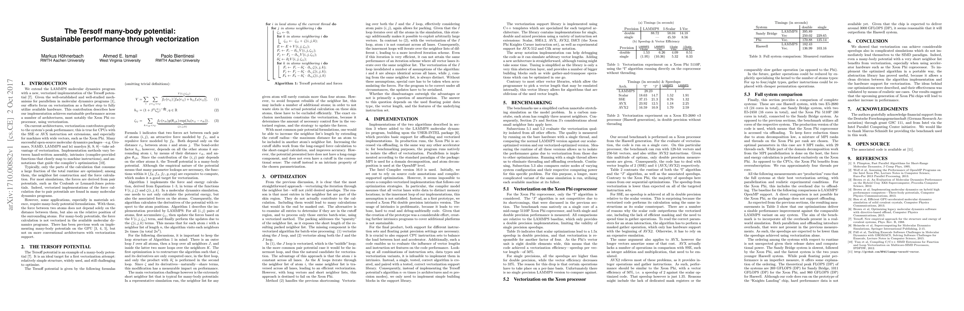 This paper presents optimization techniques for vectorizing the Tersoff many-body potential in molecular dynamics simulations, achieving significant performance improvements on both CPUs and accelerators like the Intel Xeon Phi. The study highlights the benefits of vectorization over scalar performance, especially for high-performance computing on parallel machines.