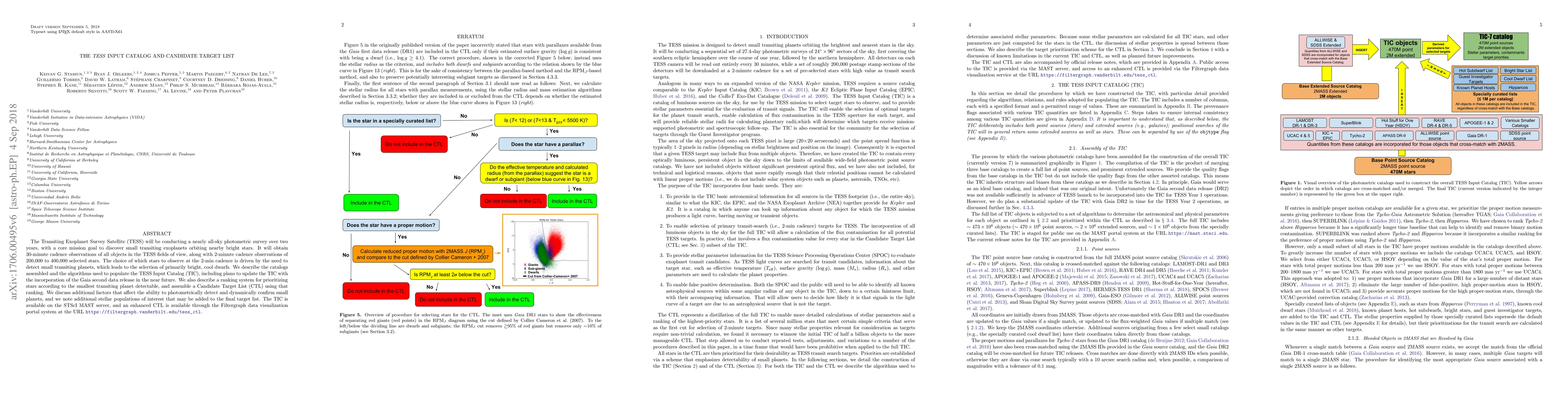 The TESS Input Catalog (TIC) compiles data for stars selected for detailed observations to detect small transiting exoplanets, prioritizing bright, cool dwarfs. The Candidate Target List (CTL) ranks these stars based on the smallest detectable planet, with additional factors considered for photometric detection and confirmation.
