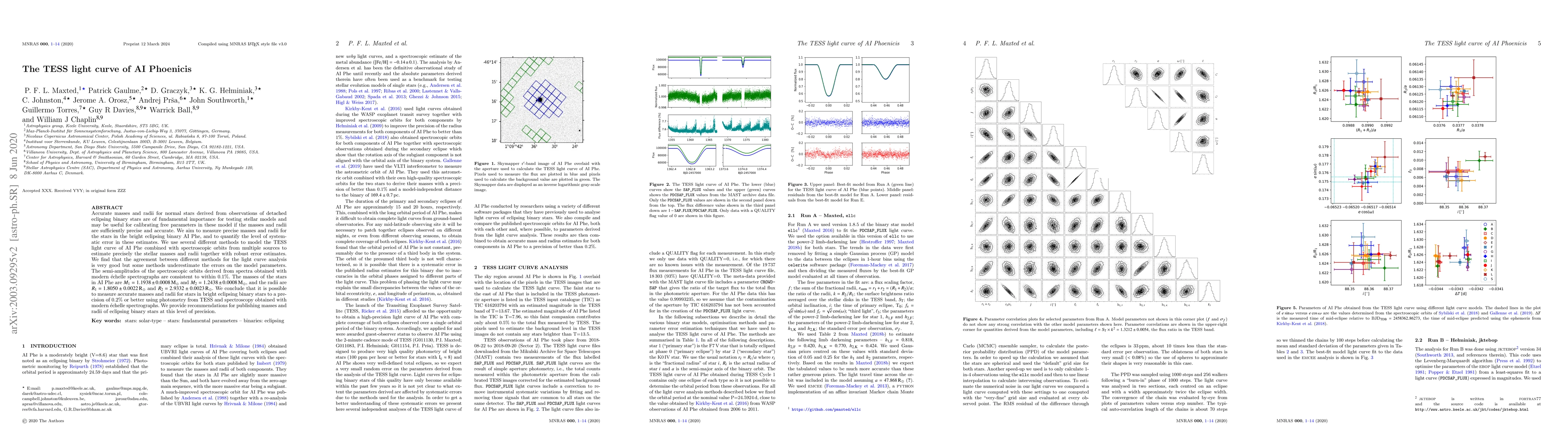 Accurate masses and radii for normal stars derived from observations of detached eclipsing binary stars are of fundamental importance for testing stellar models and may be useful for calibrating free parameters in these model if the masses and radii are sufficiently precise and accurate. We aim to measure precise masses and radii for the stars in the bright eclipsing binary AI Phe, and to quantify the level of systematic error in these estimates. We use several different methods to model the TESS light curve of AI Phe combined with spectroscopic orbits from multiple sources to estimate precisely the stellar masses and radii together with robust error estimates. We find that the agreement between different methods for the light curve analysis is very good but some methods underestimate the errors on the model parameters. The semi-amplitudes of the spectroscopic orbits derived from spectra obtained with modern echelle spectrographs are consistent to within 0.1%. The masses of the stars in AI Phe are $M_1 = 1.1938 \pm 0.0008 M_{\odot}$ and $M_2 = 1.2438 \pm 0.0008M_{\odot}$, and the radii are $R_1 = 1.8050 \pm 0.0022 R_{\odot}$ and $R_2 = 2.9332 \pm 0.0023 R_{\odot}$. We conclude that it is possible to measure accurate masses and radii for stars in bright eclipsing binary stars to a precision of 0.2% or better using photometry from TESS and spectroscopy obtained with modern echelle spectrographs. We provide recommendations for publishing masses and radii of eclipsing binary stars at this level of precision.