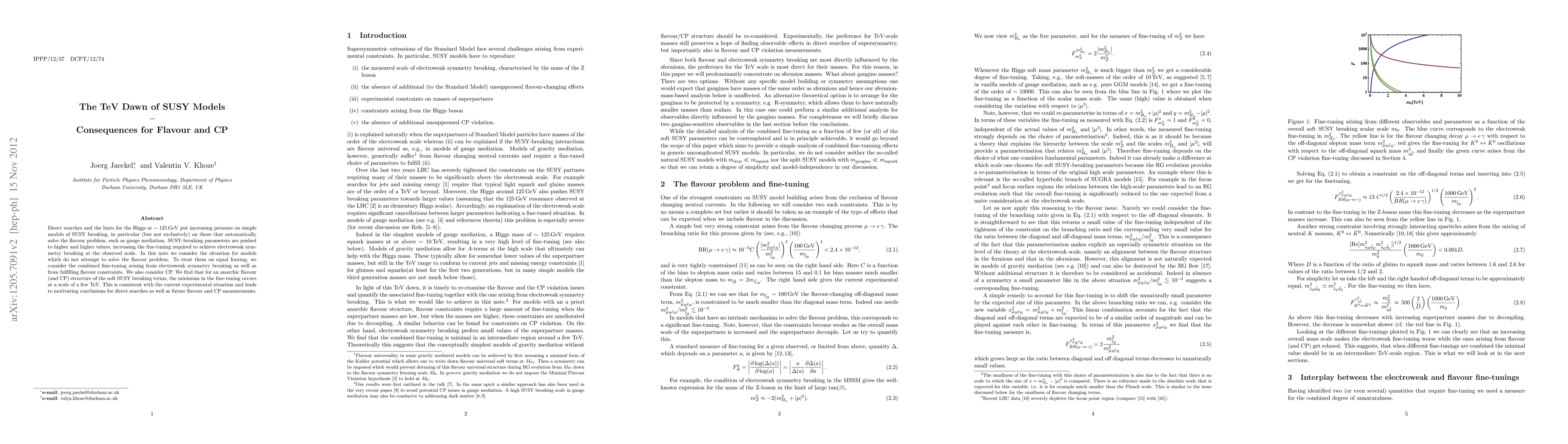 Direct searches and the hints for the Higgs at ~125 GeV put increasing pressure on simple models of SUSY breaking, in particular (but not exclusively) on those that automatically solve the flavour problem, such as gauge mediation. SUSY-breaking parameters are pushed to higher and higher values, increasing the fine-tuning required to achieve electroweak symmetry breaking at the observed scale. In this note we consider the situation for models which do not attempt to solve the flavour problem. To treat them on equal footing, we consider the combined fine-tuning arising from electroweak symmetry breaking as well as from fulfilling flavour constraints. We also consider CP. We find that for an anarchic flavour (and CP) structure of the soft SUSY breaking terms, the minimum in the fine-tuning occurs at a scale of a few TeV. This is consistent with the current experimental situation and leads to motivating conclusions for direct searches as well as future flavour and CP measurements.