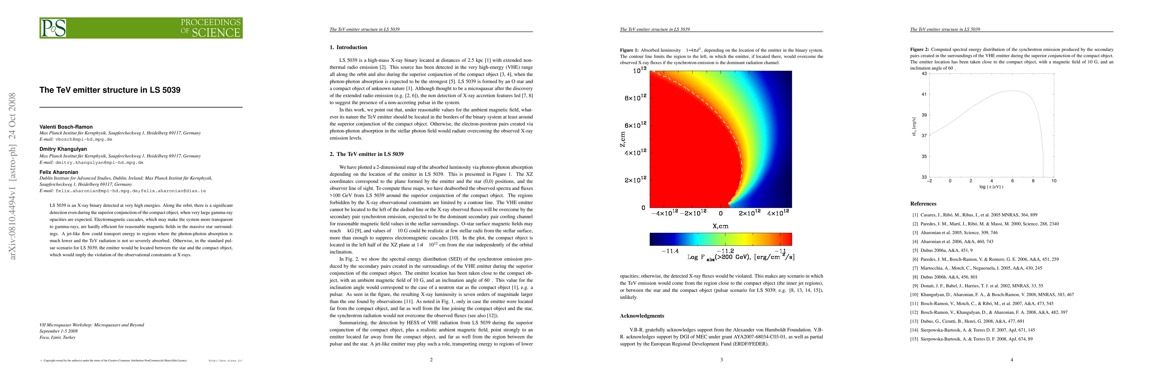A study on the TeV emitter structure in LS 5039 suggests a jet-like flow could transport energy to reduce gamma-ray absorption, contradicting a standard pulsar scenario. This finding improves understanding of the system's X-ray binary behavior at very high energies.