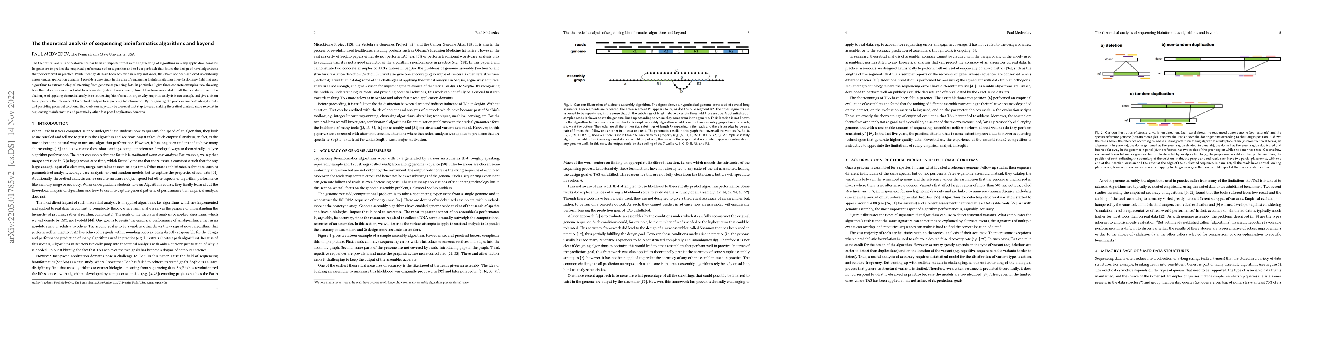 This paper examines the effectiveness of theoretical analysis in sequencing bioinformatics, highlighting both successful and unsuccessful applications. It identifies challenges in applying theoretical analysis and advocates for a more relevant approach to improve algorithm design in this field.