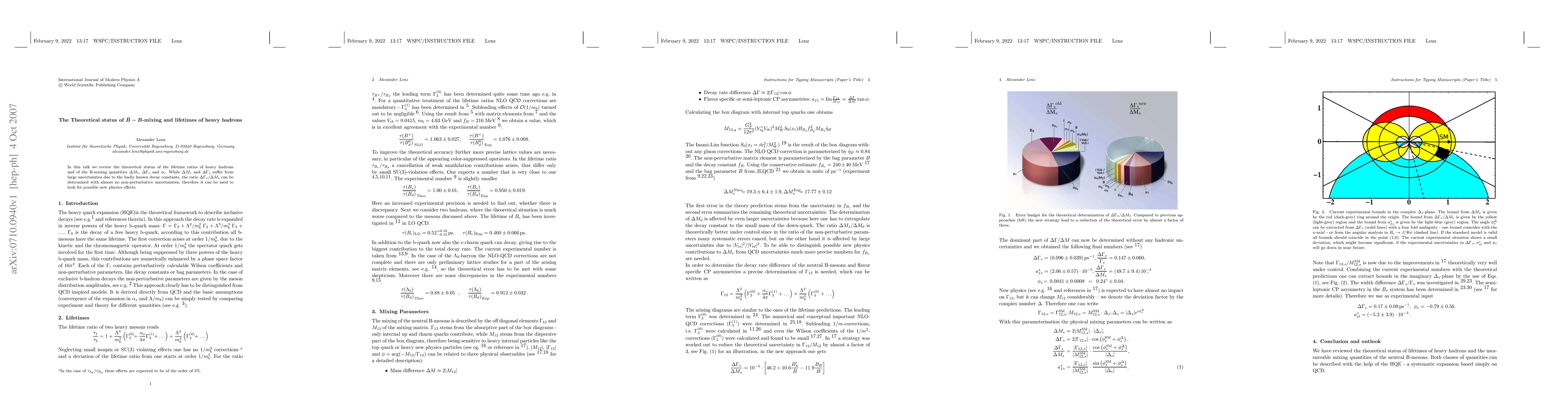 In this talk we review the theoretical status of the lifetime ratios of heavy hadrons and of the B-mixing quantities $\Delta M_s$, $\Delta \Gamma_s$ and $\phi_s$. While $\Delta M_s$ and $\Delta \Gamma_s$ suffer from large uncertainties due to the badly known decay constants, the ratio $\Delta \Gamma_s / \Delta M_s$ can be determined with almost no non-perturbative uncertainties, therefore it can be used to look for possible new physics effects.