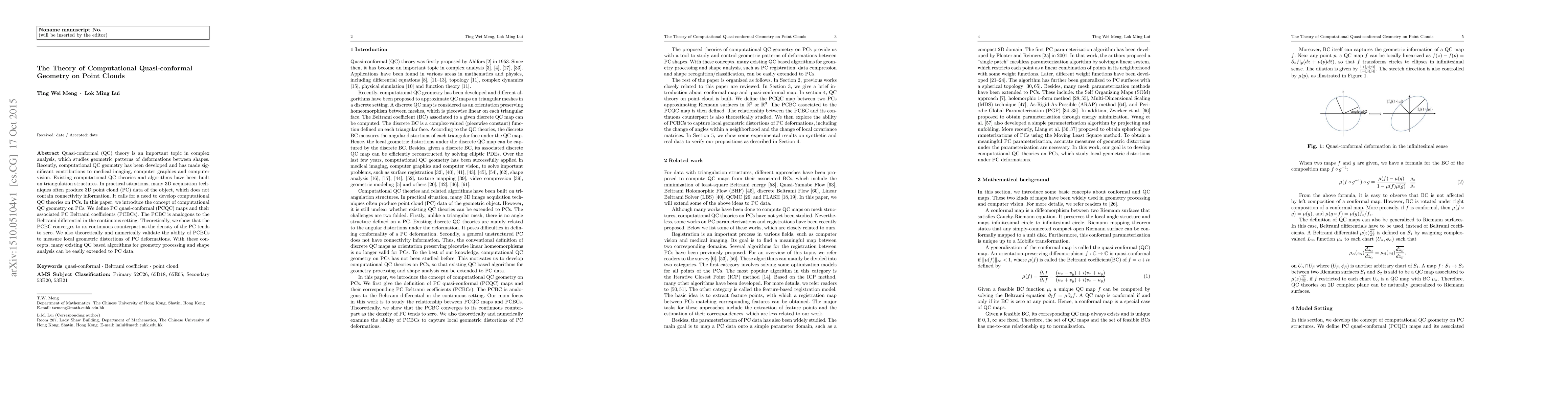 This paper introduces computational quasi-conformal (QC) geometry on point clouds (PCs), defining PC quasi-conformal maps and associated Beltrami coefficients. It demonstrates the convergence of these coefficients to their continuous counterparts and validates their effectiveness in measuring local geometric distortions.