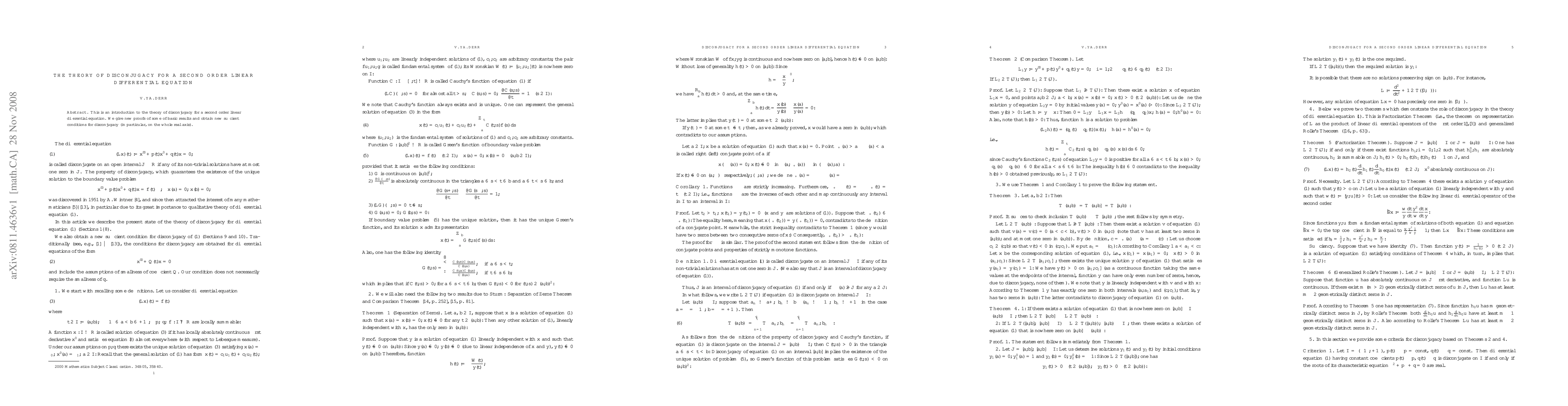 This paper introduces a theory of disconjugacy for second-order linear differential equations, providing new proofs and sufficient conditions for disconjugacy on the real axis.