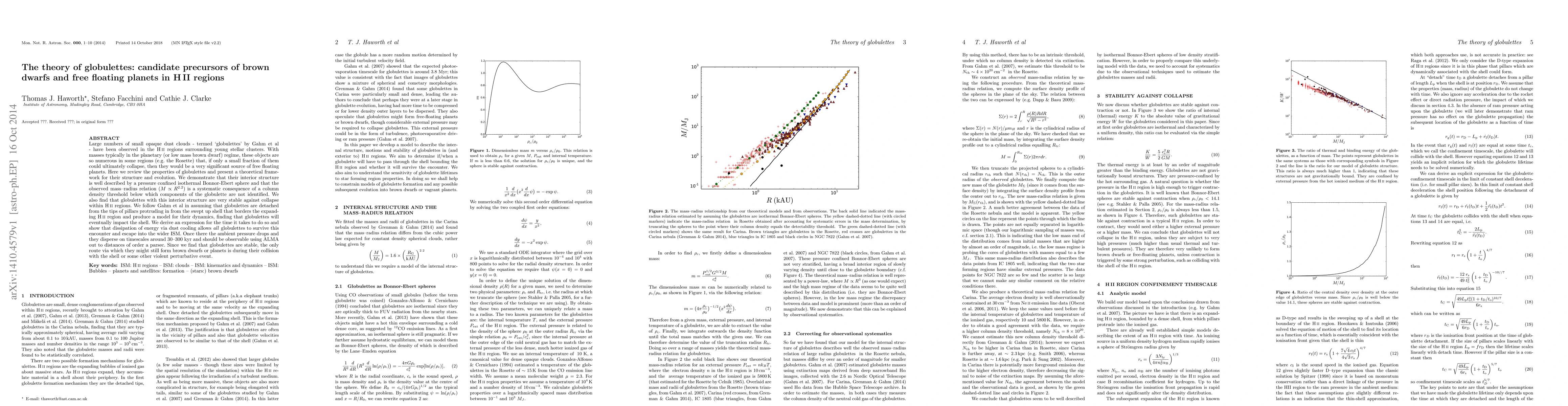 Large numbers of small opaque dust clouds - termed 'globulettes' by Gahm et al - have been observed in the H II regions surrounding young stellar clusters. With masses typically in the planetary (or low mass brown dwarf) regime, these objects are so numerous in some regions (e.g. the Rosette) that, if only a small fraction of them could ultimately collapse, then they would be a very significant source of free floating planets. Here we review the properties of globulettes and present a theoretical framework for their structure and evolution. We demonstrate that their interior structure is well described by a pressure confined isothermal Bonnor-Ebert sphere and that the observed mass-radius relation (mass approximately proportional to the radius squared) is a systematic consequence of a column density threshold below which components of the globulette are not identified. We also find that globulettes with this interior structure are very stable against collapse within H II regions. We follow Gahm et al in assuming that globulettes are detached from the tips of pillars protruding in from the swept up shell that borders the expanding H II region and produce a model for their dynamics, finding that globulettes will eventually impact the shell. We derive an expression for the time it takes to do so and show that dissipation of energy via dust cooling allows all globulettes to survive this encounter and escape into the wider ISM. Once there the ambient pressure drops and they disperse on timescales around 30-300 kyr and should be observable using ALMA out to distances of order a parsec. Since we find that globulettes are stable, the only route via which they might still form brown dwarfs or planets is during their collision with the shell or some other violent perturbative event.