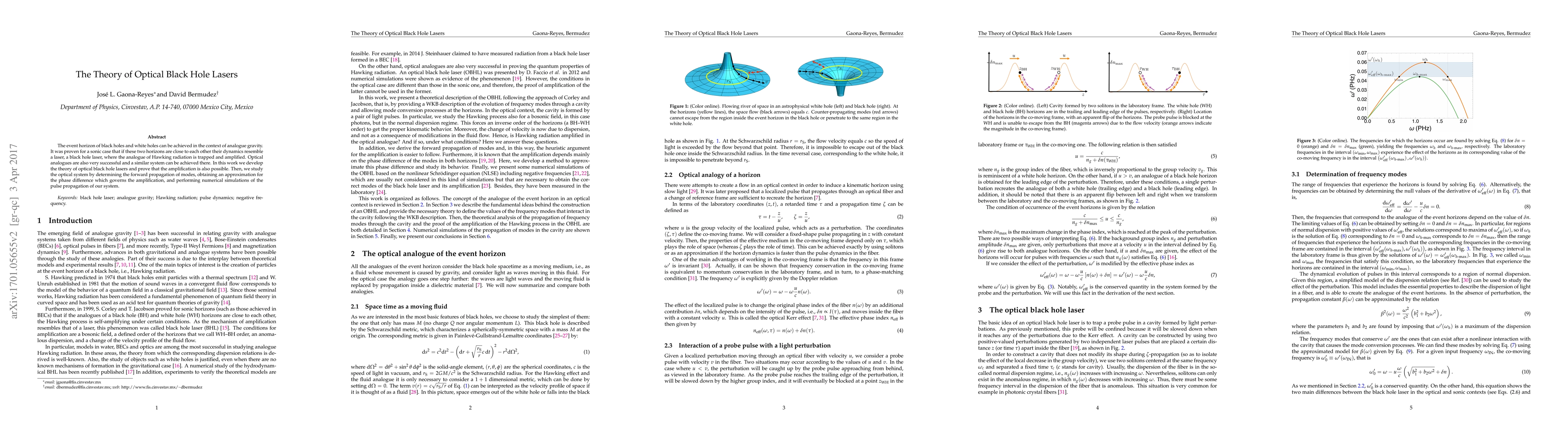 Researchers develop a theory for optical black hole lasers, proving that amplification is possible in a system resembling a laser with event horizon dynamics. They also study the forward propagation of modes to determine phase differences governing amplification.