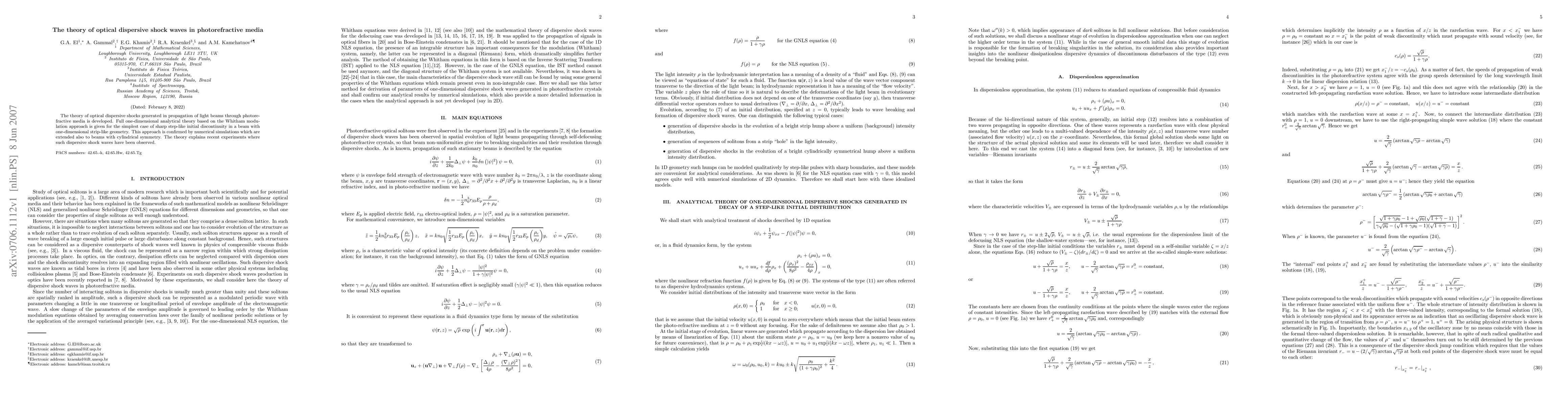 This paper develops a full one-dimensional analytical theory for optical dispersive shocks in photorefractive media using the Whitham modulation approach, validated by numerical simulations and explaining recent experimental observations.