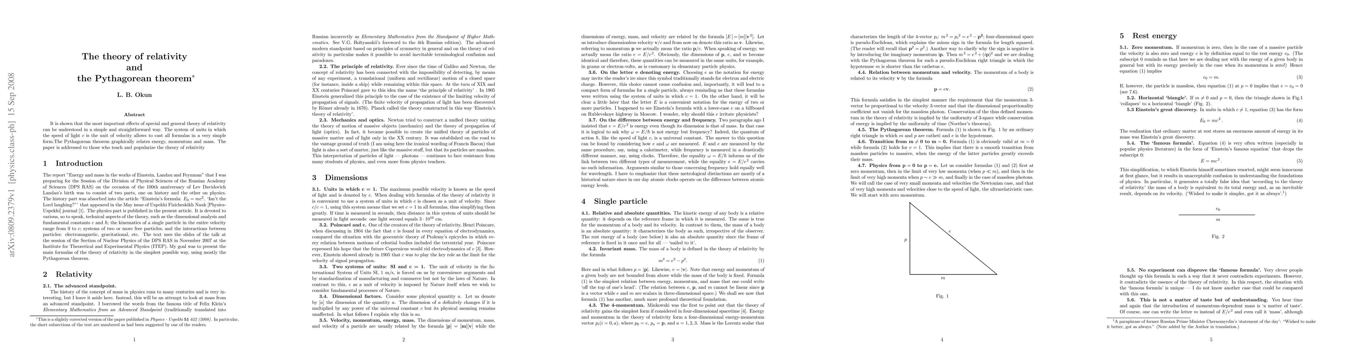 This paper demonstrates how special and general relativity can be intuitively understood using a unit system where the speed of light is the velocity unit, simplifying formulas. The Pythagorean theorem is used to graphically relate energy, momentum, and mass, aimed at educators and popularizers of relativity.