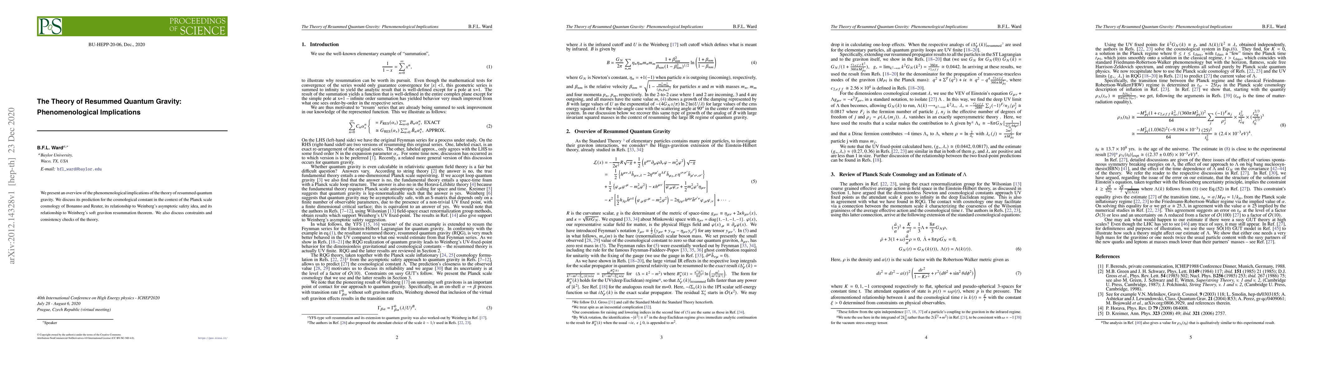This paper explores the phenomenological implications of resummed quantum gravity, focusing on its predictions for the cosmological constant, its ties to asymptotic safety, and the consistency checks of the theory. It also examines the relationship with Weinberg's soft graviton resummation theorem.