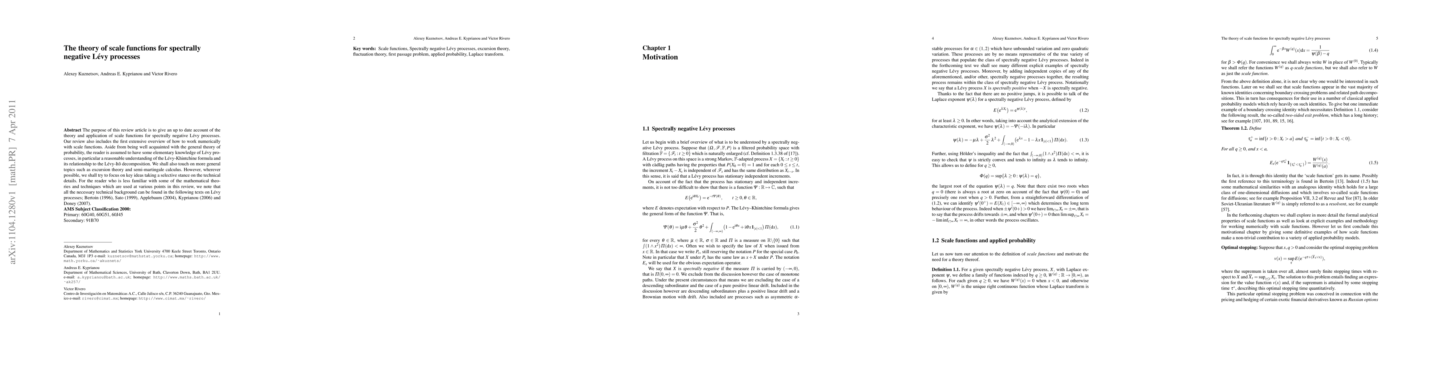 This review article provides a comprehensive overview of scale functions for spectrally negative Lévy processes, including their theory, applications, and numerical methods. It also touches on related topics such as excursion theory and semi-martingale calculus, with references to foundational texts for deeper understanding.