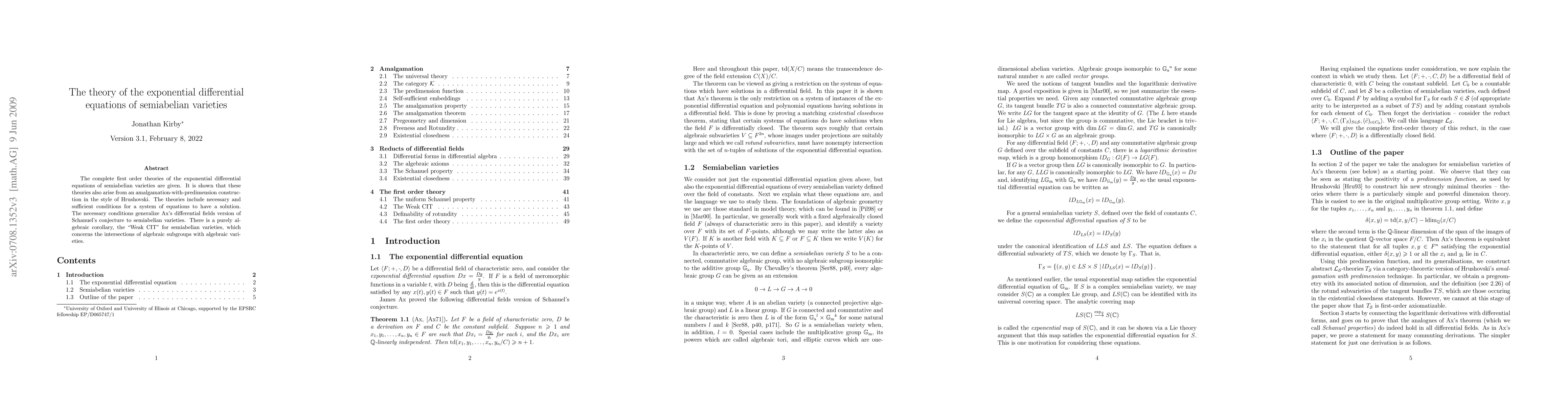 This paper presents the complete first-order theories of exponential differential equations on semiabelian varieties, demonstrating their emergence from an amalgamation construction. It provides conditions for solvability that generalize Ax's version of Schanuel's conjecture, with a corollary concerning intersections of algebraic subgroups.