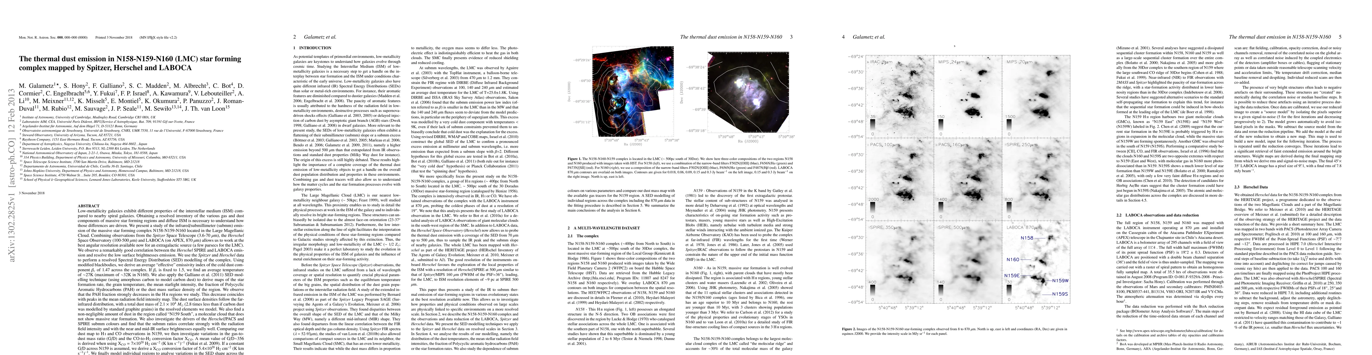 This study combines Spitzer, Herschel, and LABOCA observations to map the thermal dust emission in the LMC star-forming complex N158-N159-N160, revealing a strong correlation between SPIRE and LABOCA emissions. The research derives a global emissivity index and maps star formation rates, finding a significant decrease in PAH fraction in HII regions.