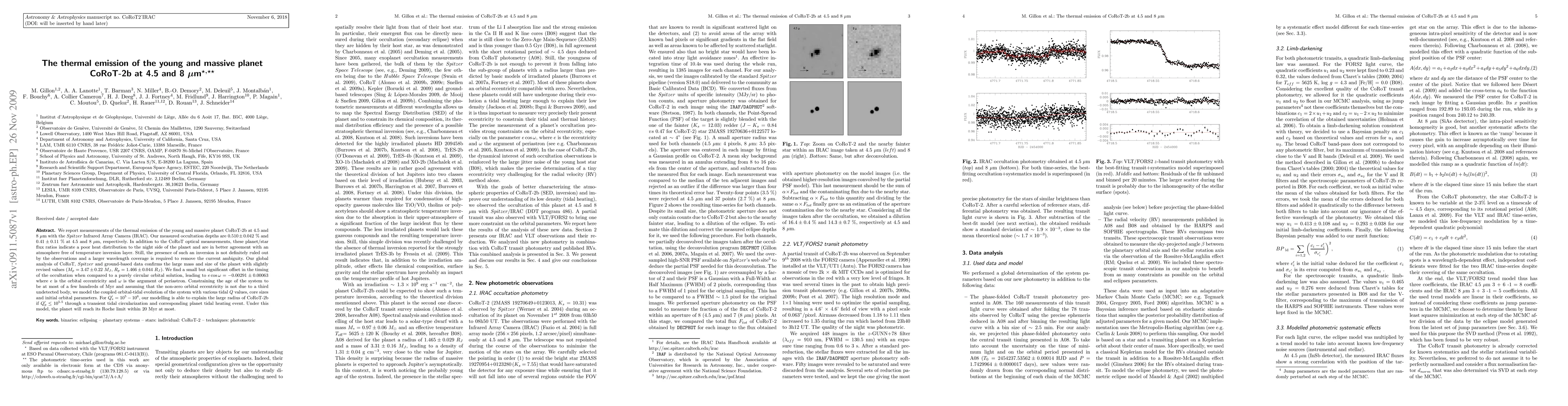The study measures CoRoT-2b's thermal emission at 4.5 and 8 microns using Spitzer, finding poor heat distribution to the night side, suggesting an atmosphere without a temperature inversion layer. However, the presence of such a layer isn't definitively ruled out. The research also reveals a slight orbital eccentricity and models the coupled orbital-tidal evolution of the system, suggesting transient tidal circularization and planet tidal heating could explain the planet's large radius.