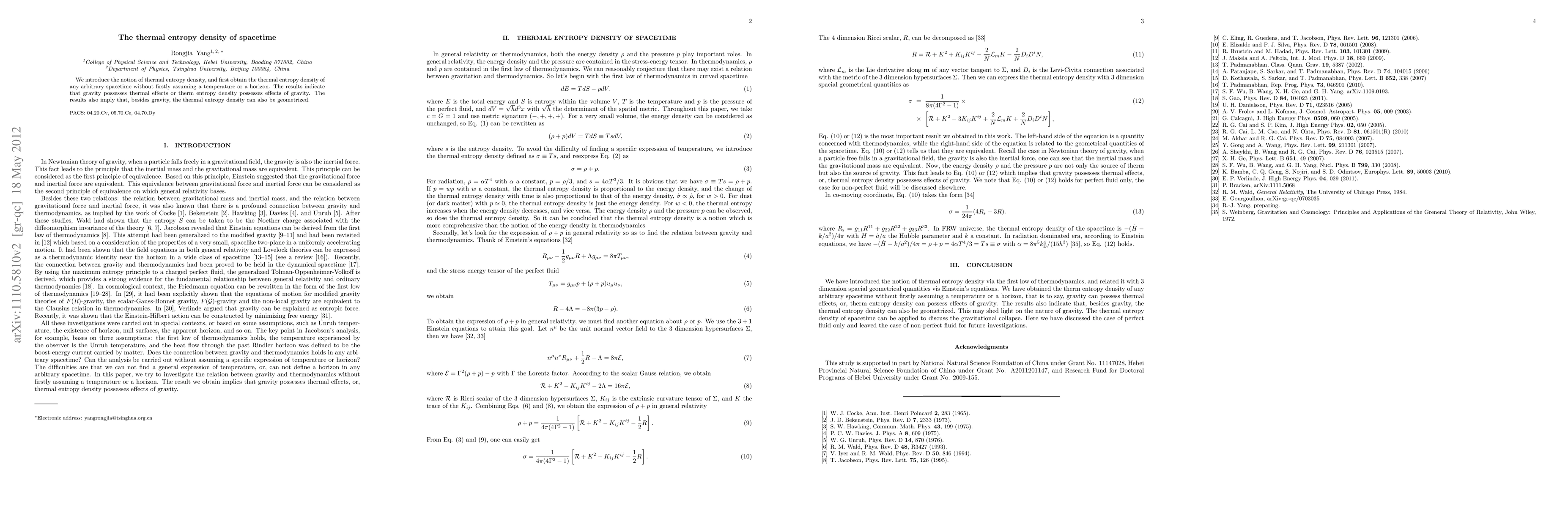 The connection between thermal entropy density and gravity is a novel finding in the context of general relativity