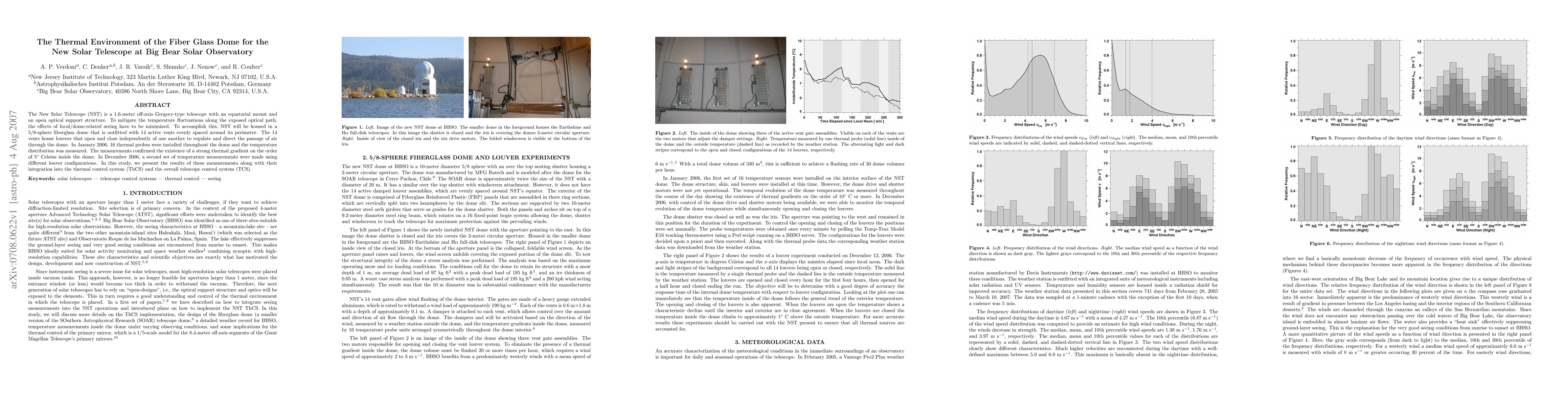 This study investigates the thermal environment inside the fiberglass dome housing the New Solar Telescope at Big Bear Solar Observatory, focusing on temperature regulation and gradient reduction through active vents. Measurements in 2006 revealed significant thermal gradients, which were addressed by adjusting the louvers' configurations, contributing to the telescope's thermal control system.