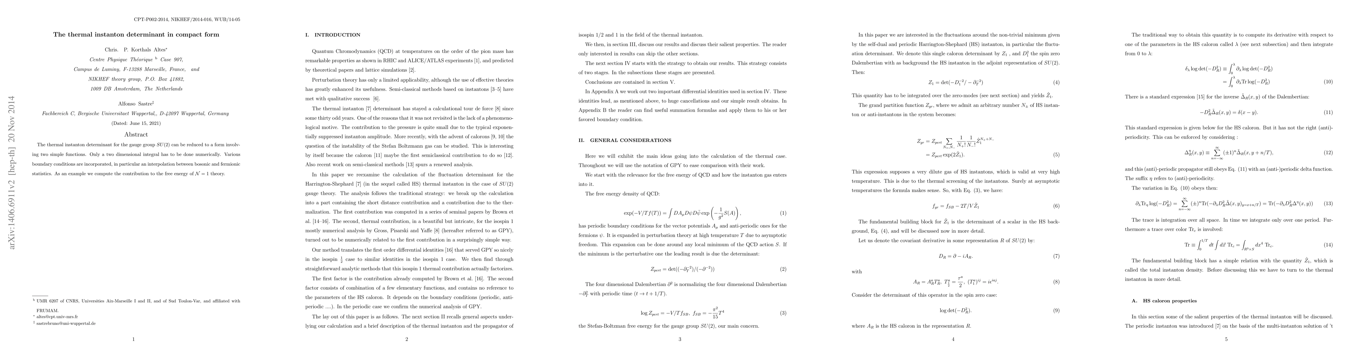 The thermal instanton determinant for the gauge group $SU(2)$ can be reduced to a form involving two simple functions. Various boundary conditions can easily incorporated. Only a two dimensional integral has to be done numerically. As an example we compute the contribution to the free energy of $\mathcal{N}=1$ theory.