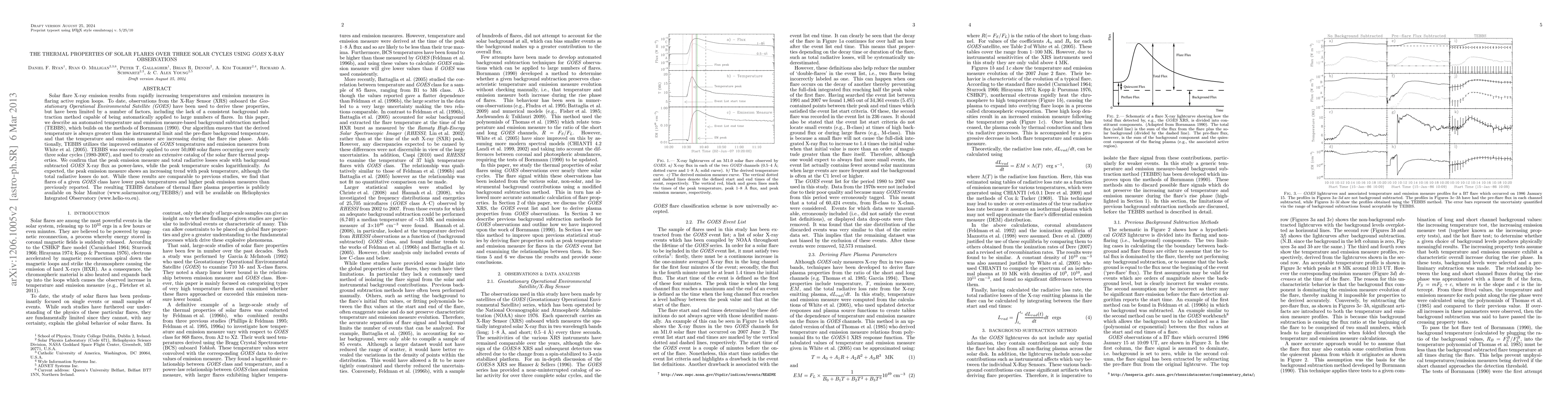 This paper introduces an automated background subtraction method (TEBBS) for analyzing solar flare X-ray emissions from GOES observations over nearly three solar cycles, revealing lower peak temperatures and higher emission measures than previously reported. The method ensures accurate temperature and emission measure derivation and is applied to over 50,000 flares, creating a comprehensive thermal properties catalog.