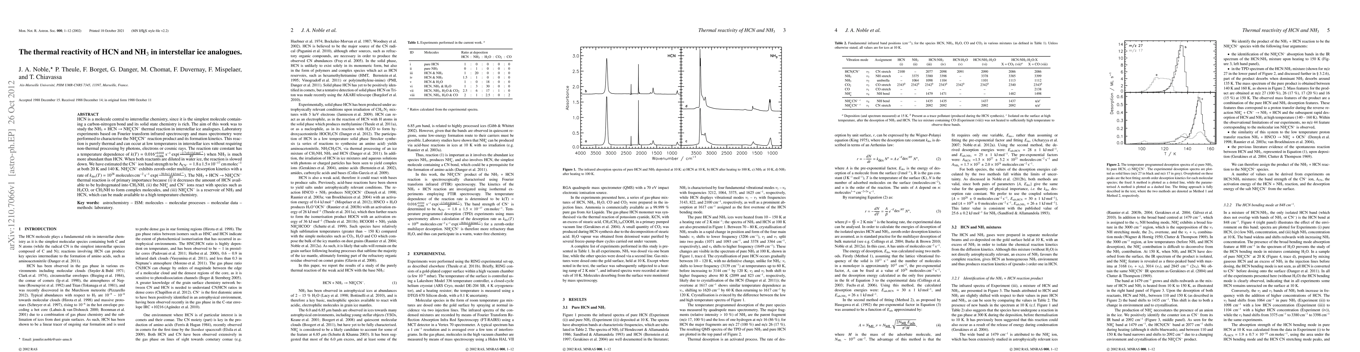 The paper presents detailed spectroscopic characterization and kinetic analysis of the NH3 + HCN -> NH4+CN- reaction in interstellar ice analogues, providing a foundation for understanding related chemical processes in space.