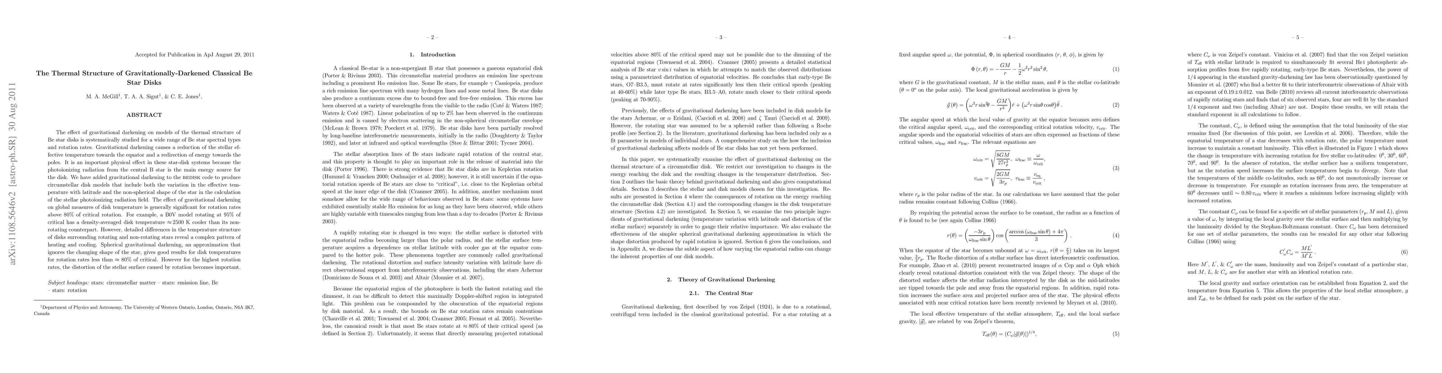 This paper investigates the thermal structure of Be star disks under gravitational darkening, finding significant effects on disk temperatures for rotation rates above 80% of critical. The study shows that gravitational darkening redistributes energy from the equator to the poles, impacting the photoionizing radiation field and leading to complex heating and cooling patterns in the disks.