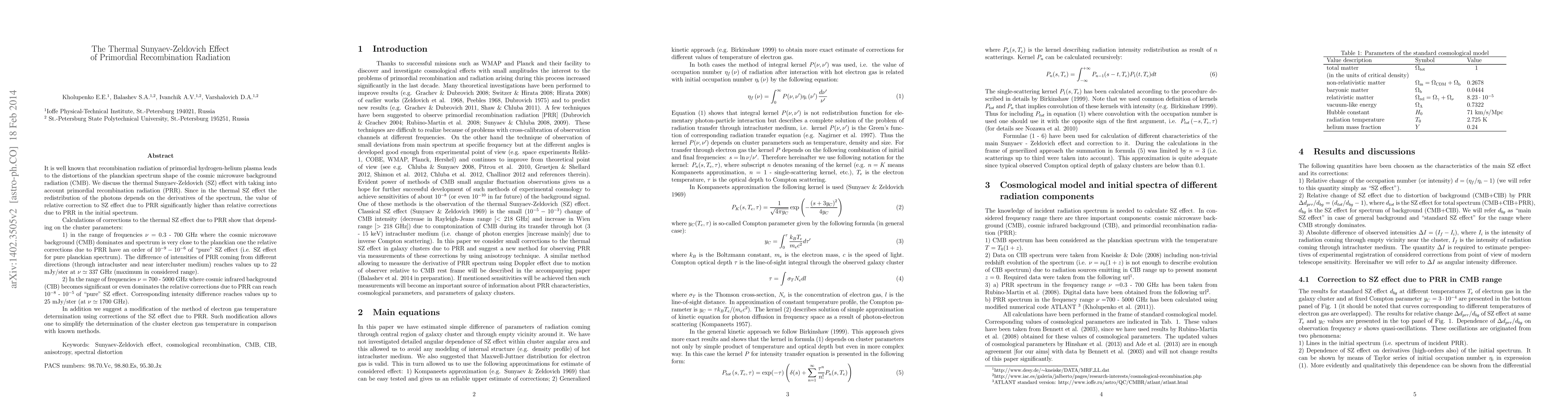 This paper explores the thermal Sunyaev-Zeldovich effect considering primordial recombination radiation, revealing significant corrections to the effect in frequency ranges dominated by CMB and CIB. The relative corrections due to primordial recombination radiation are shown to be up to 10^-6 and 10^-5 in the respective frequency ranges, suggesting a method for more straightforward determination of cluster electron gas temperatures.
